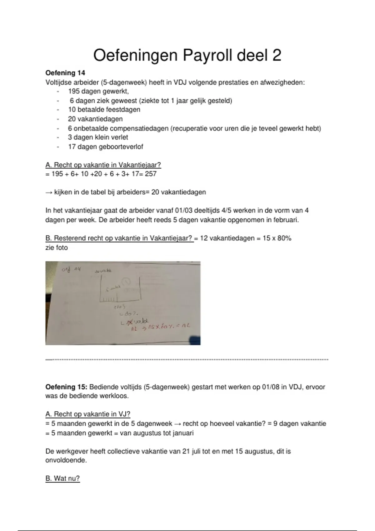 Oefening 17: Een bediende werkt voltijds (5-dagenweek) werkt 11 maanden en neemt 1