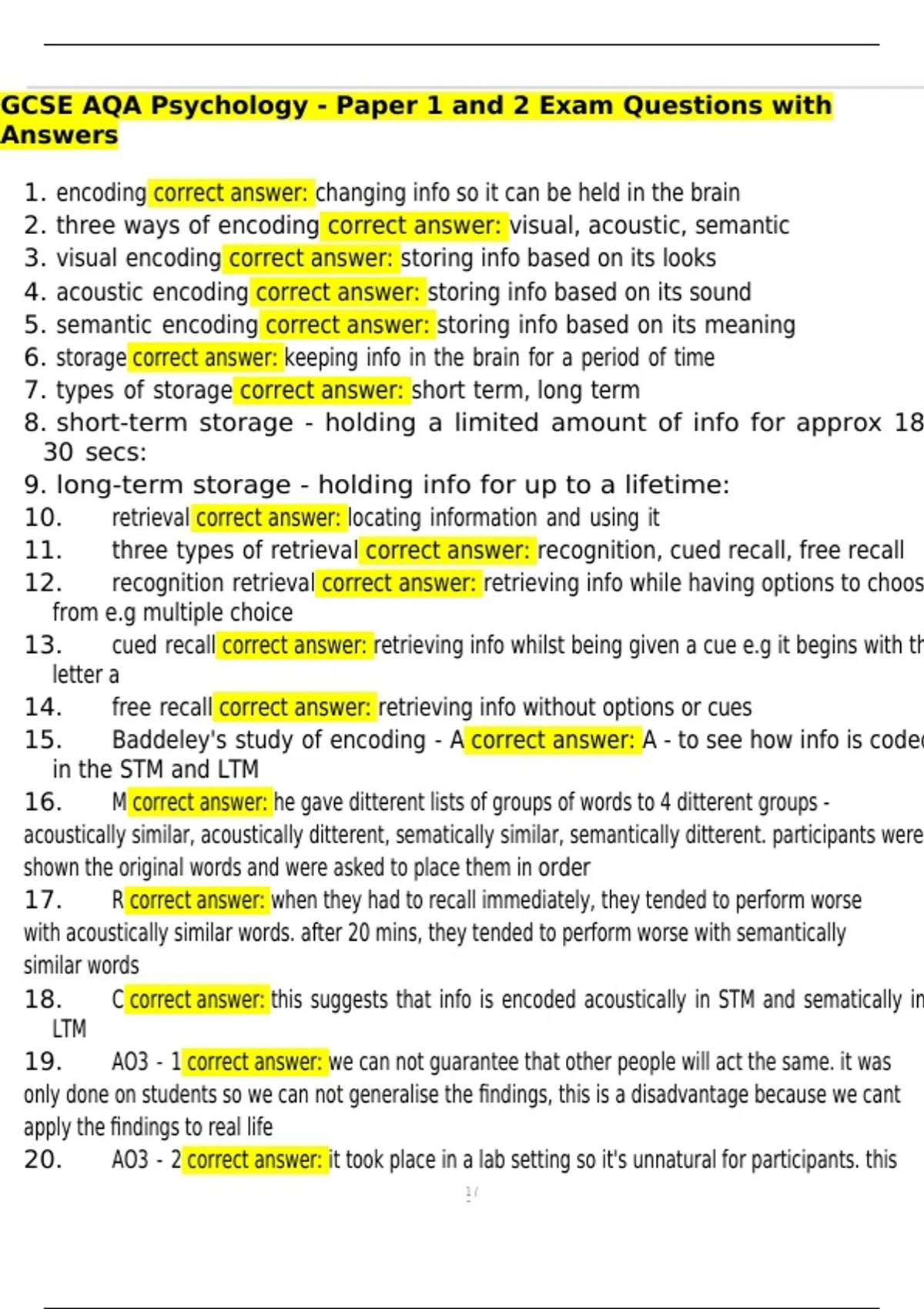 GCSE AQA Psychology - Paper 1 and 2 Exam Questions with Answers