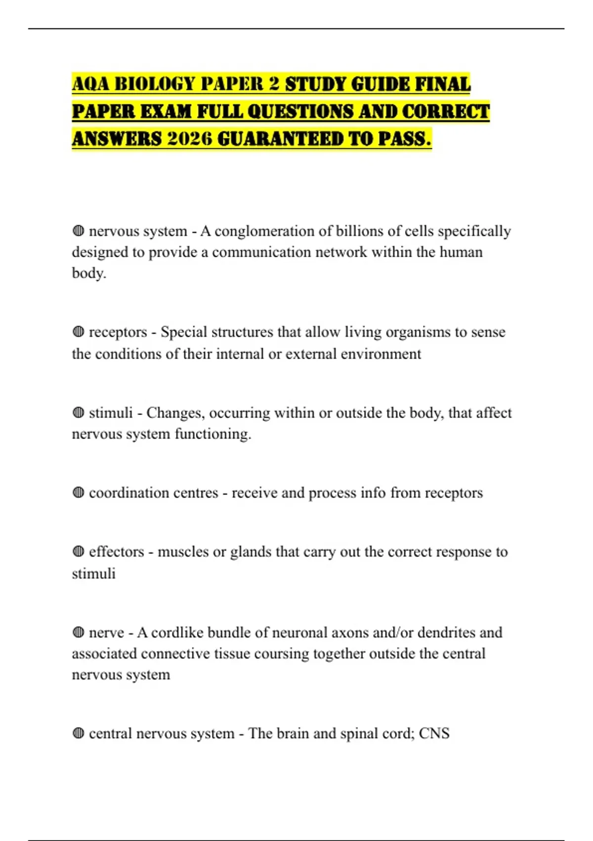 AQA BIOLOGY PAPER 2 STUDY GUIDE FINAL PAPER EXAM FULL QUESTIONS AND CORRECT ANSWERS 2026 GUARANTEED TO PASS.