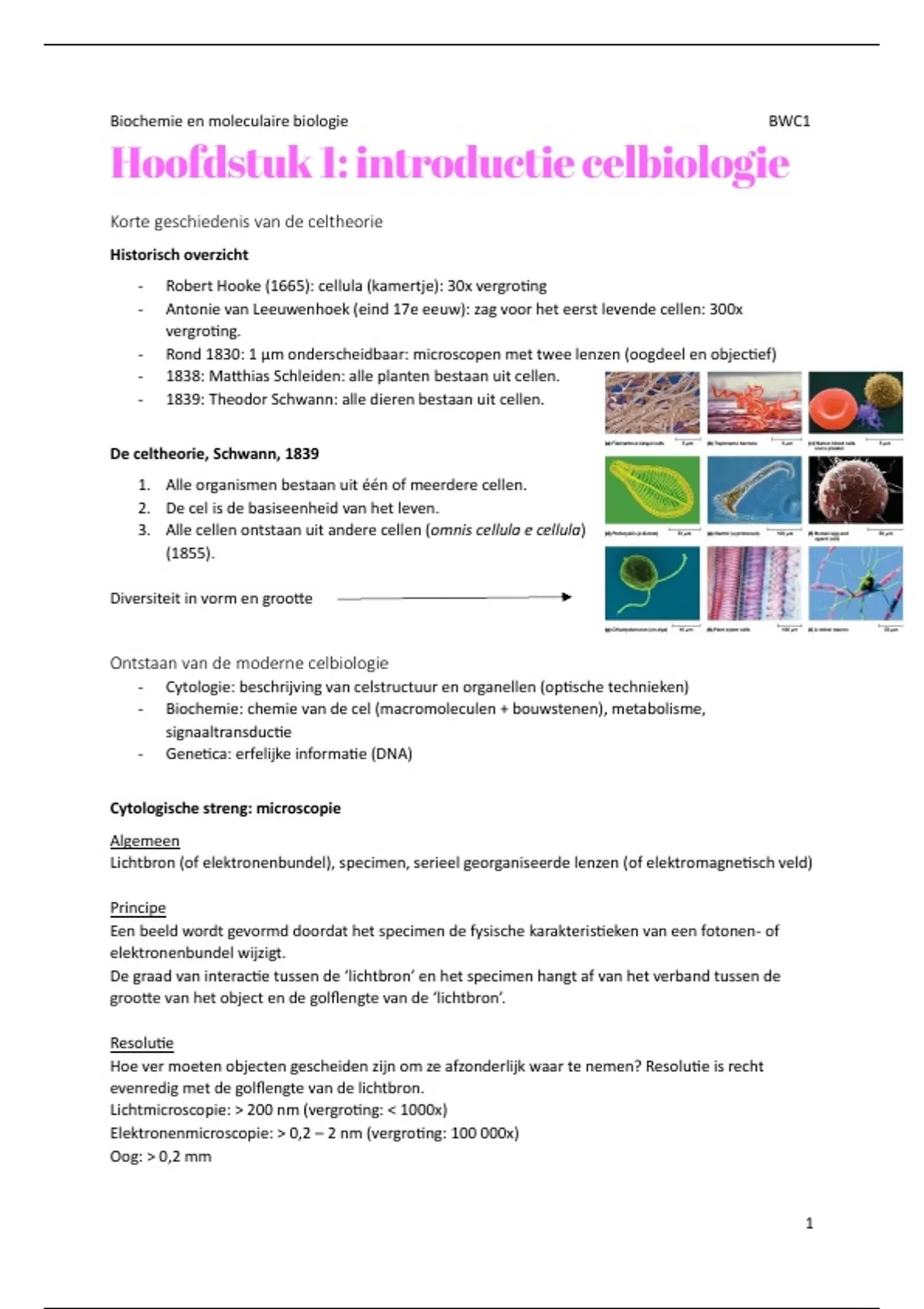 Hoofdstuk 1: introductie celbiologie
