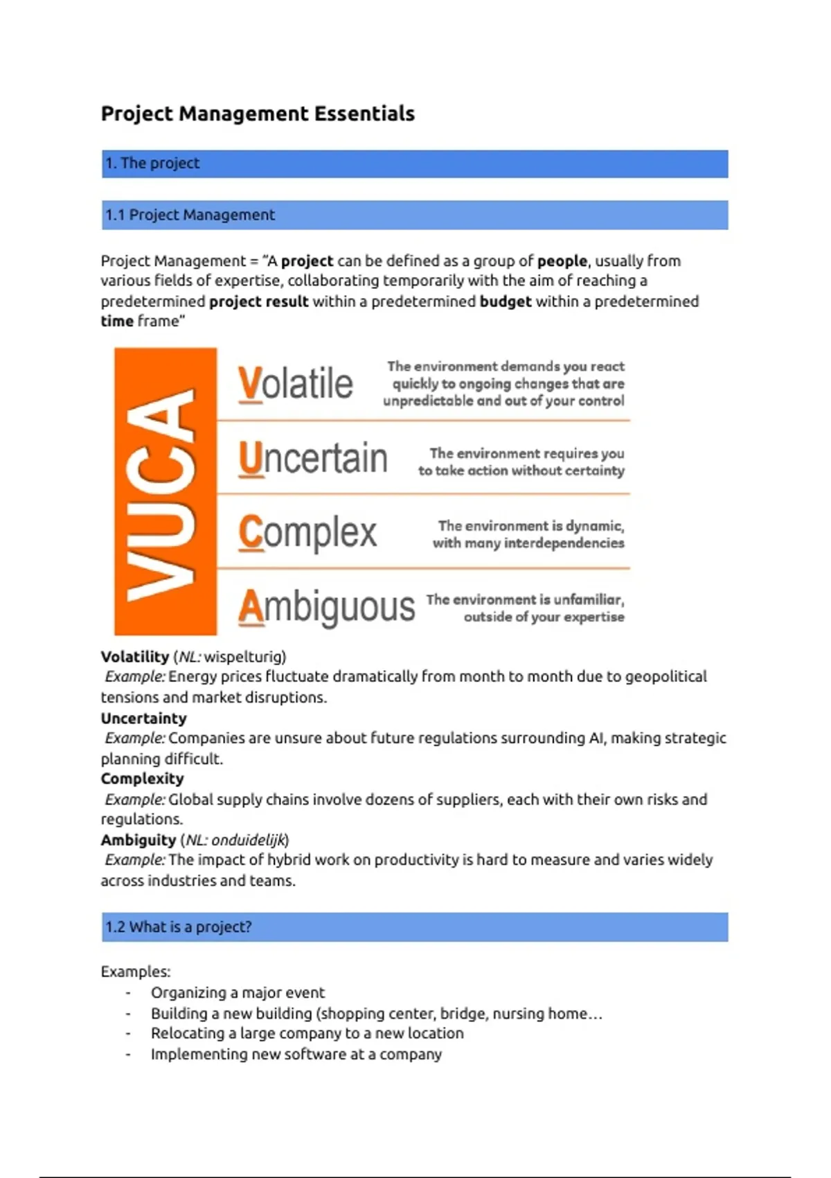 Samenvatting Project Management Essentials Module 1 en 4