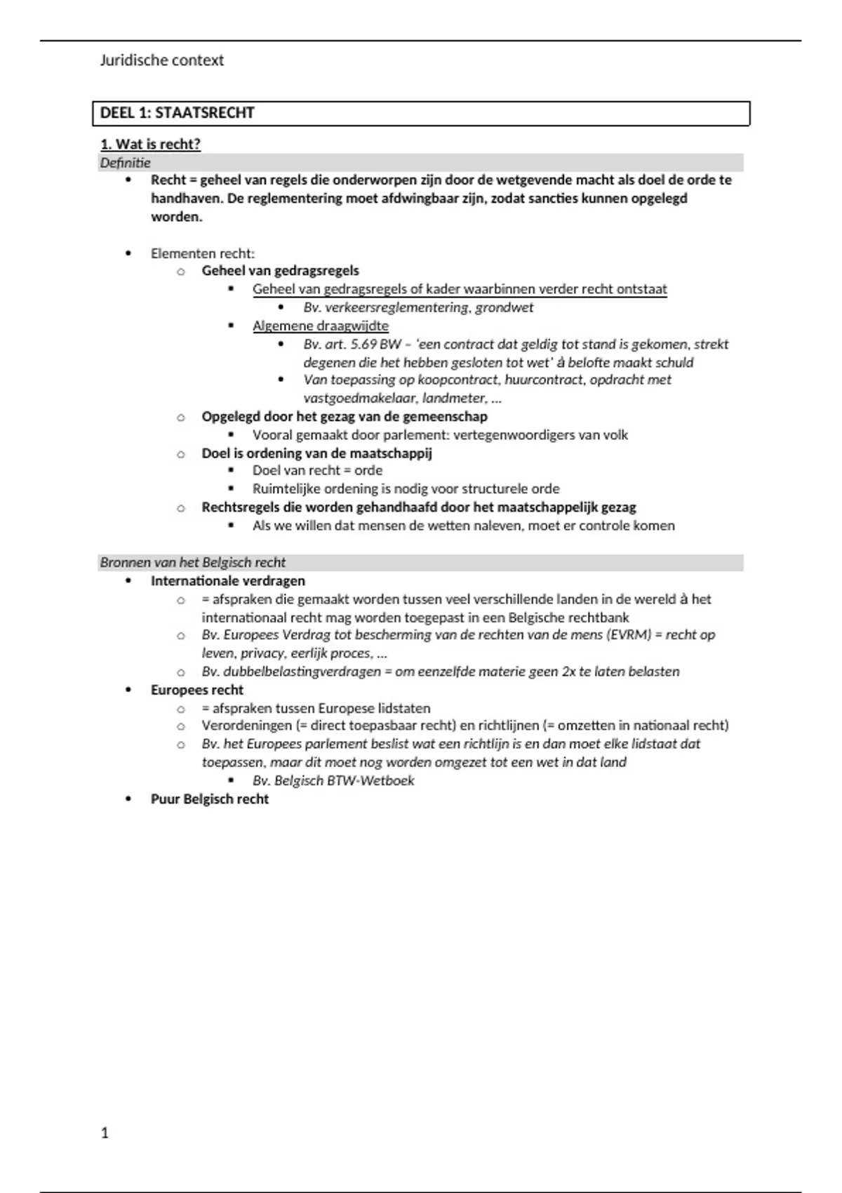 Deze samenvatting van het vak 'juridische context' bevat alle te kennen leerstof zowel van de powerpoint als van de syllabus. Het is een zeer overzichtelijke samenvatting met een duidelijke oplijsting.