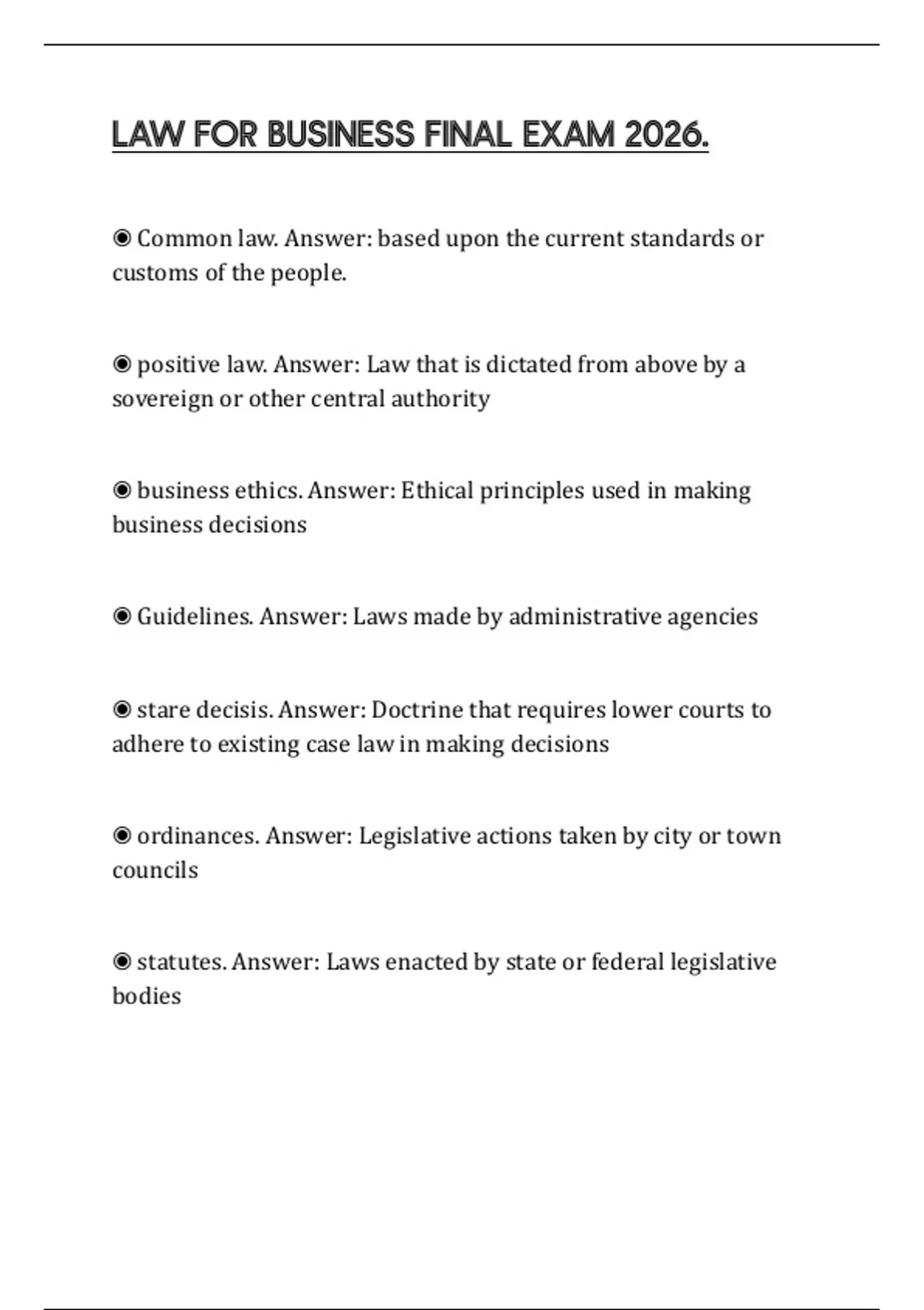 ◉ statutes. Answer: Laws enacted by state or federal legislative