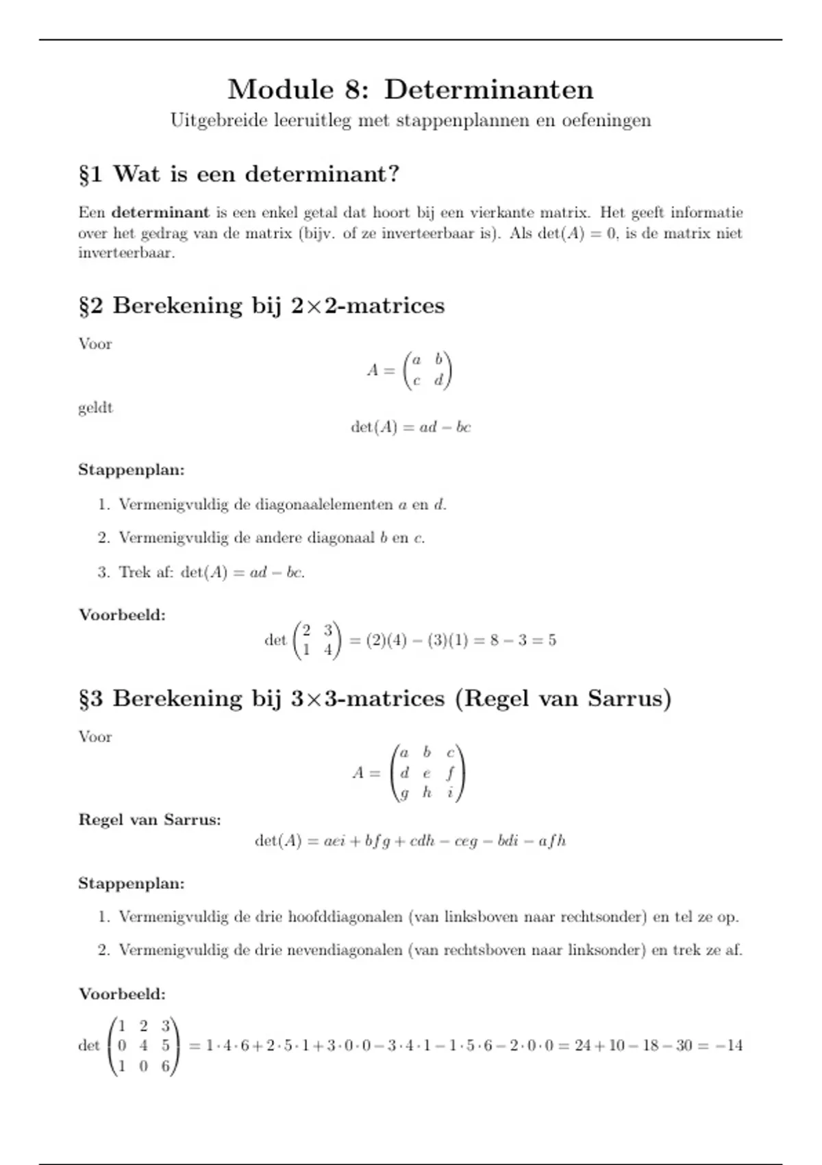 Samenvatting TEW WiskVEconomen M8 DETERMINANTEN