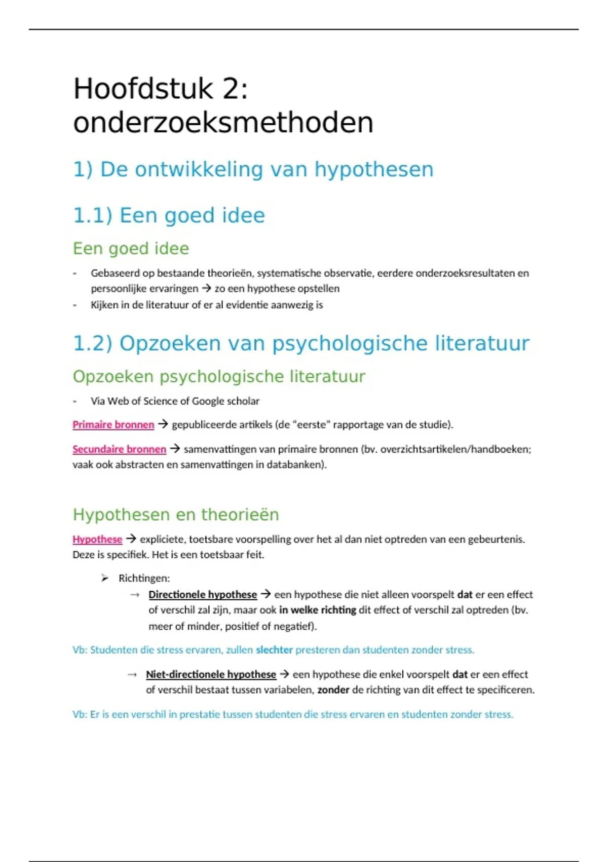 Deze samenvatting behandelt Hoofdstuk 2: Onderzoeksmethoden en legt stap voor stap uit hoe sociaalpsychologisch onderzoek wordt opgezet. Onderwerpen zoals hypothesen en theorieën, operationele definities, betrouwbaarheid en validiteit, zelfrapportage en gedragsobservatie worden helder uitgelegd met voorbeelden.