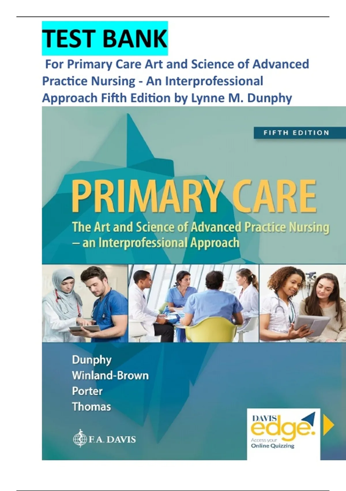 Complete Guide A+ Test Bank Primary Care Art and Science of Advanced Practice Nursing - An Interprofessional Approach 5th Edition / Chapter 1-88 Table of Contents Chapter 1 Primary Care in the Twenty-First Century: A Circle of Caring Chapter 2 Caring and the Advanced Practice Nurse Chapter 3 Health Promotion Chapter 4 The Art of Diagnosis and Treatment Chapter 5 Evidence-Based Practice Chapter 6 Common Neurological Complaints Chapter 7 Seizure Disorders Chapter 8 Degenerative Disorders Chapter 9 Cerebrovascular Accident (Stroke) Chapter 10 Infectious and Inflammatory Neurological Disorders Chapter 11 Common Skin Complaints Chapter 12 Parasitic Skin Infestations Chapter 13 Fungal Skin Infections Chapter 14 Bacterial Skin Infections Chapter 15 Viral Skin Infections Chapter 16 Dermatitis Chapter 17 Skin Lesions Chapter 18 Common Eye Complaints Chapter 19 Lid and Conjunctival Pathology Chapter 20 Visual Disturbances and Impaired Vision Chapter 21 Common Ear, Nose, and Throat Complaints Chapter 22 Hearing and Balance Disorders Chapter 23 Inflammatory and Infectious Disorders of the Ear Chapter 24 Inflammatory and Infectious Disorders of the Nose, Sinuses, Mouth, and Throat Chapter 25 Epistaxis Chapter 26 Temporomandibular Disorders Chapter 27 Dysphonia Chapter 28 Common Respiratory Complaints Chapter 29 Sleep Apnea Chapter 30 Infectious Respiratory Disorders Chapter 31 Inflammatory Respiratory Disorders Chapter 32 Lung Cancer Chapter 33 Smoking Addiction Chapter 34 Common Cardiovascular Complaints Chapter 35 Cardiac and Associated Risk Disorders Chapter 36 Arrhythmias and Valvular Disorders Chapter 37 Disorders of the Vascular System Chapter 38 Common Abdominal Complaints Chapter 39 Infectious Gastrointestinal Disorders Chapter 40 Gastric and Intestinal Disorders Chapter 41 Gall Bladder and Pancreatic Disorders Chapter 42 Cirrhosis and Liver Failure Chapter 43 Common Urinary Complaints Chapter 44 Urinary Tract Disorders Chapter 45 Kidney and Bladder Disorders Chapter 46 Common Reproductive System Complaints Chapter 47 Common Reproductive System Issues Chapter 48 Breast Disorders Chapter 49 Vaginal, Uterine, and Ovarian Disorders Chapter 50 Prostate Disorders Chapter 51 Penile and Testicular Disorders Chapter 52 Sexually Transmitted Infections Chapter 53 Common Musculoskeletal Complaints Chapter 54 Spinal Disorders Chapter 55 Soft-Tissue Disorders Chapter 56 Osteoarthritis and Osteoporosis Chapter 57 Common Endocrine and Metabolic Complaints Chapter 58 Glandular Disorders Chapter 59 Diabetes Mellitus Chapter 60 Metabolic Disorders Chapter 61 Common Hematological and Immunological Complaints Chapter 62 Hematological Disorders Chapter 63 Immunological Disorders Chapter 64 Infectious Disorders Chapter 65 Common Psychological Complaints Chapter 66 Neurodevelopmental Disorders Chapter 67 Substance-Related and Addictive Disorders Chapter 68 Schizophrenia Spectrum and other Psychotic Disorders Chapter 69 Mood Disorders Chapter 70 Anxiety Disorders and Post Traumatic Stress Disorder Chapter 71 Obsessive-Compulsive and Related Disorders Chapter 72 Other Psychiatric Disorders Chapter 73 Sexual Assault Chapter 74 Human Trafficking Chapter 75 Common Injuries Chapter 76 Toxic and Environmental Exposures Chapter 77 Primary Care of Adolescents Chapter 78 Sports Physicals Chapter 79 Primary Care of Patients who are Transgender Chapter 80 Primary Care of Veterans Chapter 81 Primary Care of the Patient with Cancer Chapter 82 Primary Care of Older Adults Chapter 83 Palliative and End-of-life Care Chapter 84 Pain Management Chapter 85 Ethical and Legal Issues of a Caring-Based Practice Chapter 86 Quality & Value-Based Payment: Making an Economic Impact on Health Care Chapter 87 Primary Care Approaches to Behavioral Health Chapter 88 Putting Caring Into Practice: Caring for Self Chapter 1. Primary Care in the Twenty-First Century: A Circle of Caring 1. A nurse has conducted a literature review in an effort to identify the effect of handwashing on the incidence of nosocomial (hospital-acquired) infections in acute care settings. An article presented findings at a level of significance of <0.01. This indicates that A)the control group and the experimental group were more than 99% similar. B)the findings of the study have less than 1% chance of being attributable to chance. C)the effects of the intervention were nearly zero. D)the clinical significance of the findings was less than 1:100. Ans: B Feedback: The level of significance is the level at which the researcher believes that the study results most likely represent a nonchance event. A level of significance of <0.01 indicates that there is less than 1% probability that the result is due to chance. 2. A nurse has read a qualitative research study in order to understand the lived experience of parents who have a neonatal loss. Which of the following questions should the nurse prioritize when appraising the results of this study? A) How well did the authors capture the personal experiences of these parents? B)How well did the authors control for confounding variables that may have affected the findings? C)Did the authors use statistical measures that were appropriate to the phenomenon in question? D)Were the instruments that the researchers used statistically valid and reliable? Ans: A Feedback: Qualitative studies are judged on the basis of how well they capture and convey the subjective experiences of individuals. Statistical measures and variables are not dimensions of a qualitative methodology. 3.A nurse has expressed skepticism to a colleague about the value of nursing research, claiming that nursing research has little relevance to practice. How can the nurses colleague best defend the importance of nursing research? A) The existence of nursing research means that nurses are now able to access federal grant money, something that didnt use to be the case. B) Nursing research has allowed the development of masters and doctoral programs and has greatly increased