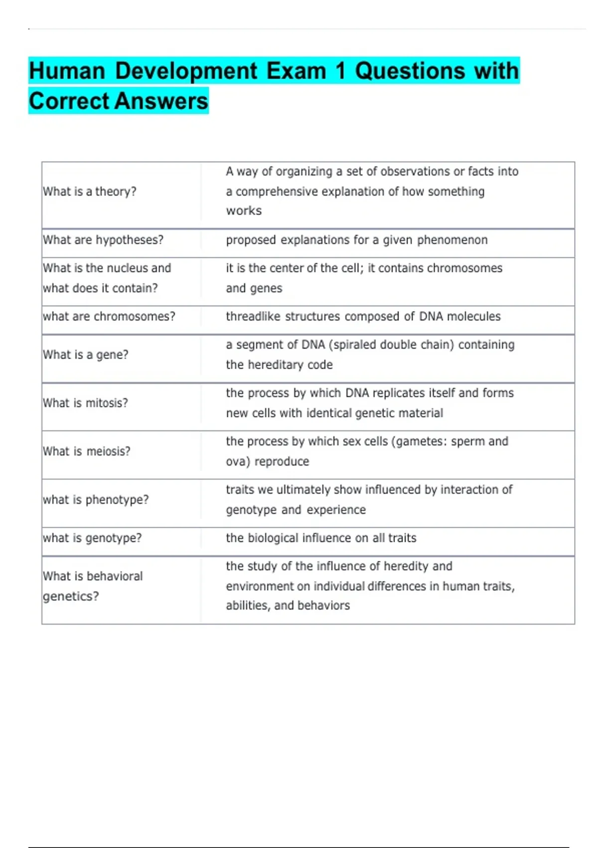 Human Development Exam 1 Questions with