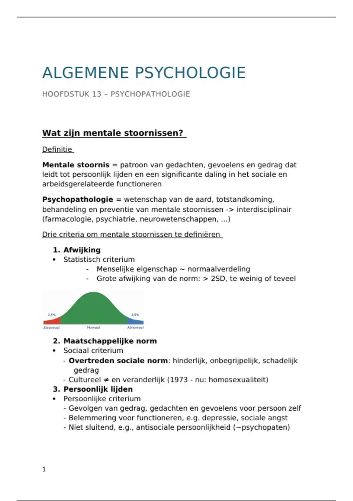 Samenvatting HS13 algemene psychologie (psychopathologie), 1ste bach klinische psychologie (UGent)