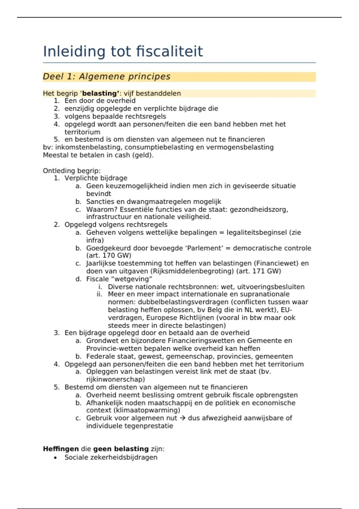 Principe: belastingen bestaan bijna uitsluitend uit bijdragen in geld om de