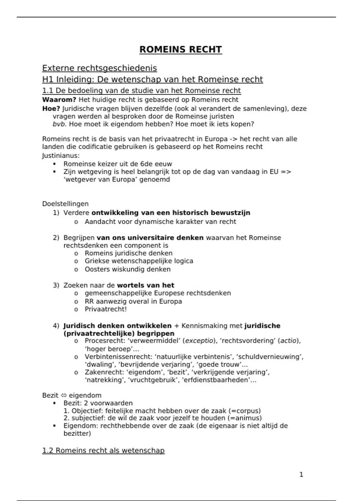 H1 Inleiding: De wetenschap van het Romeinse recht