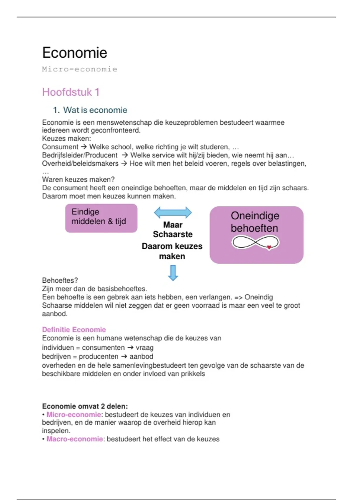 Samenvatting - Eerste jaar KMO Economoe: Micro EN macro