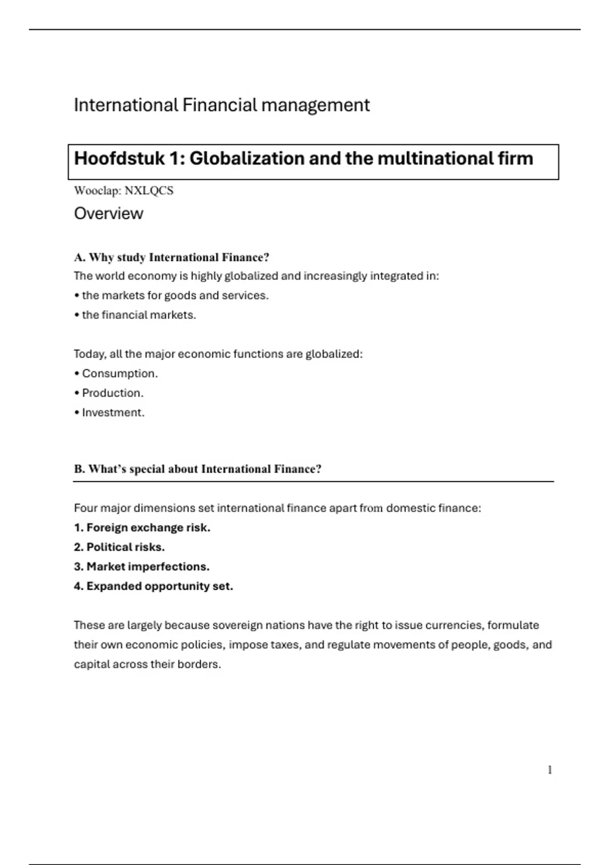 Hoofdstuk 1: Globalization and the multinational firm
