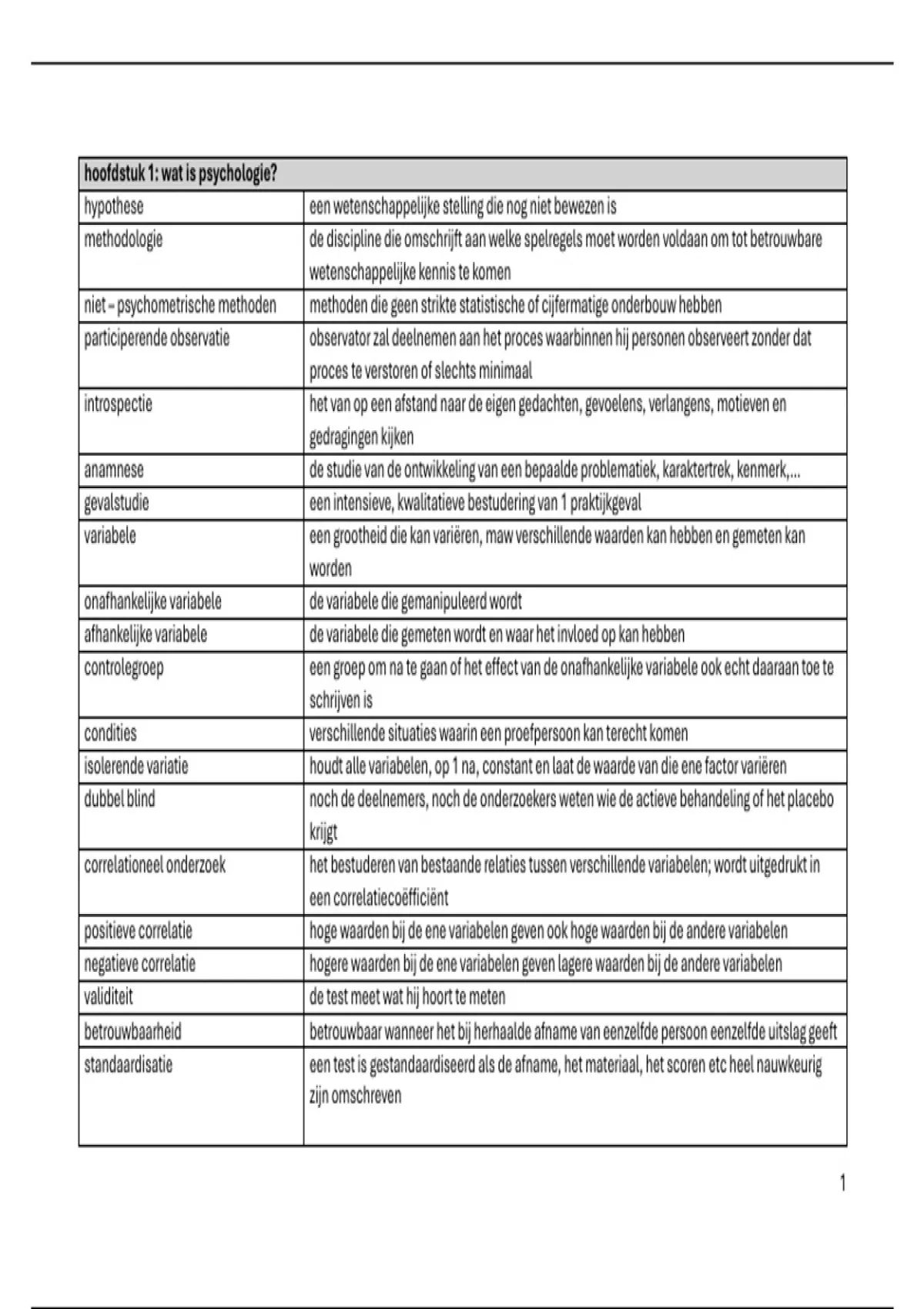 Begrippenlijst van 'psychologie'. Lijst met alle belangrijke termen/definities/personen die aan bod kwamen in de lessen en cursus.