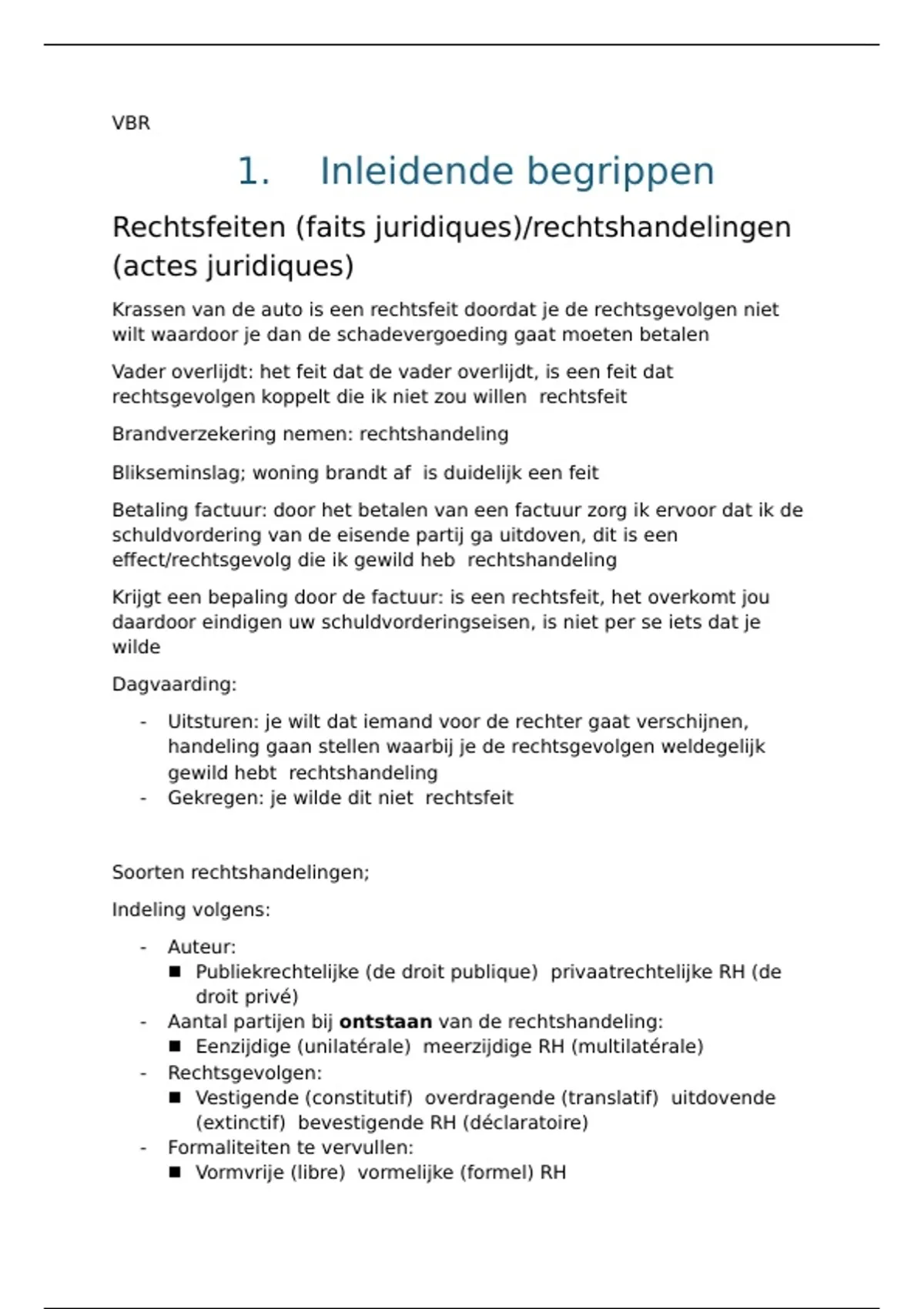 Rechtsfeiten (faits juridiques)/rechtshandelingen
