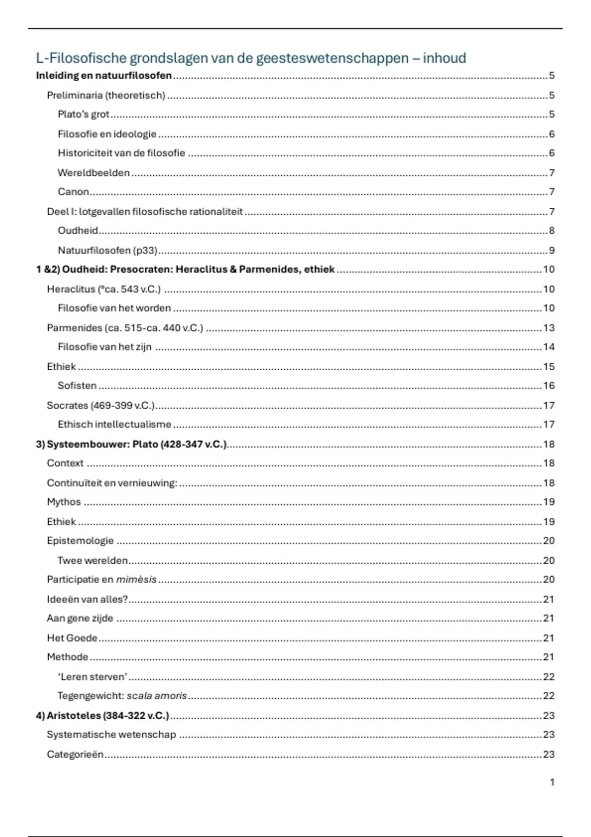 L-Filosofische grondslagen van de geesteswetenschappen – inhoud