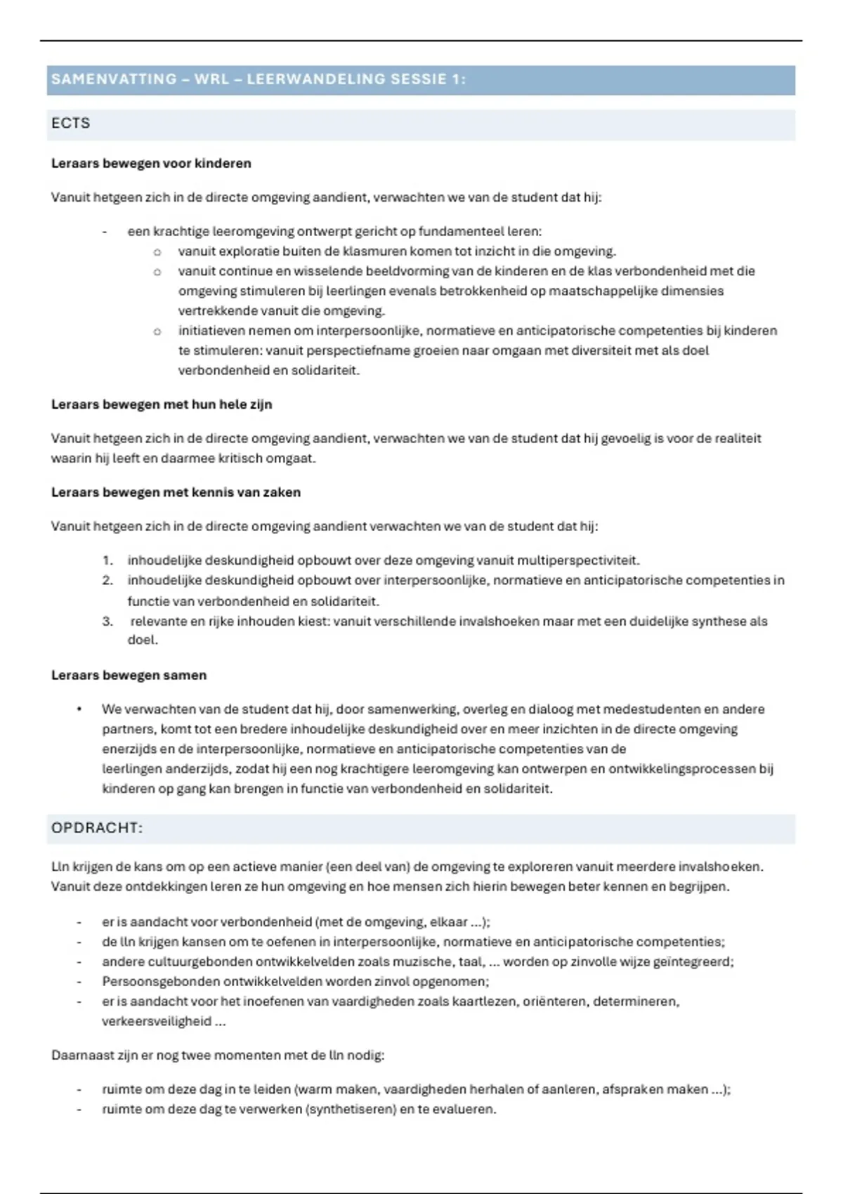SAMENVATTING – WRL – LEERWANDELING SESSIE 1:
