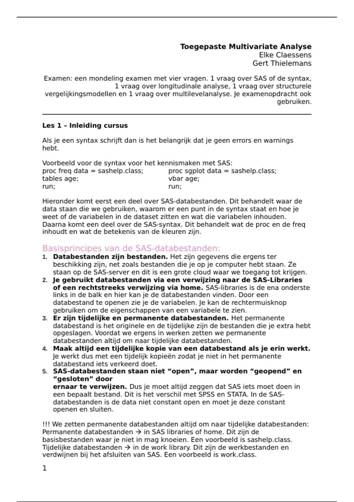 Hieronder komt eerst een deel over SAS-databestanden. Dit behandelt waar de