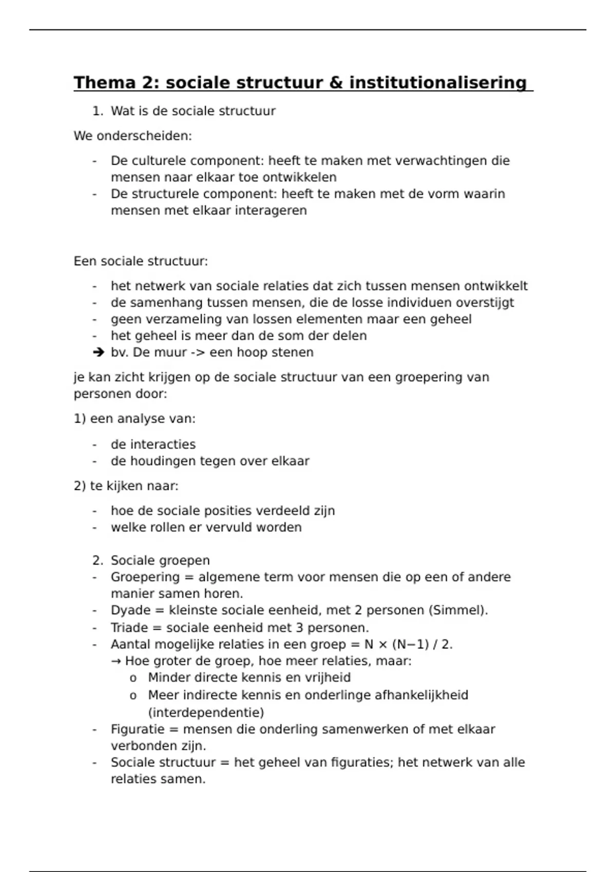 Thema 2: sociale structuur & institutionalisering