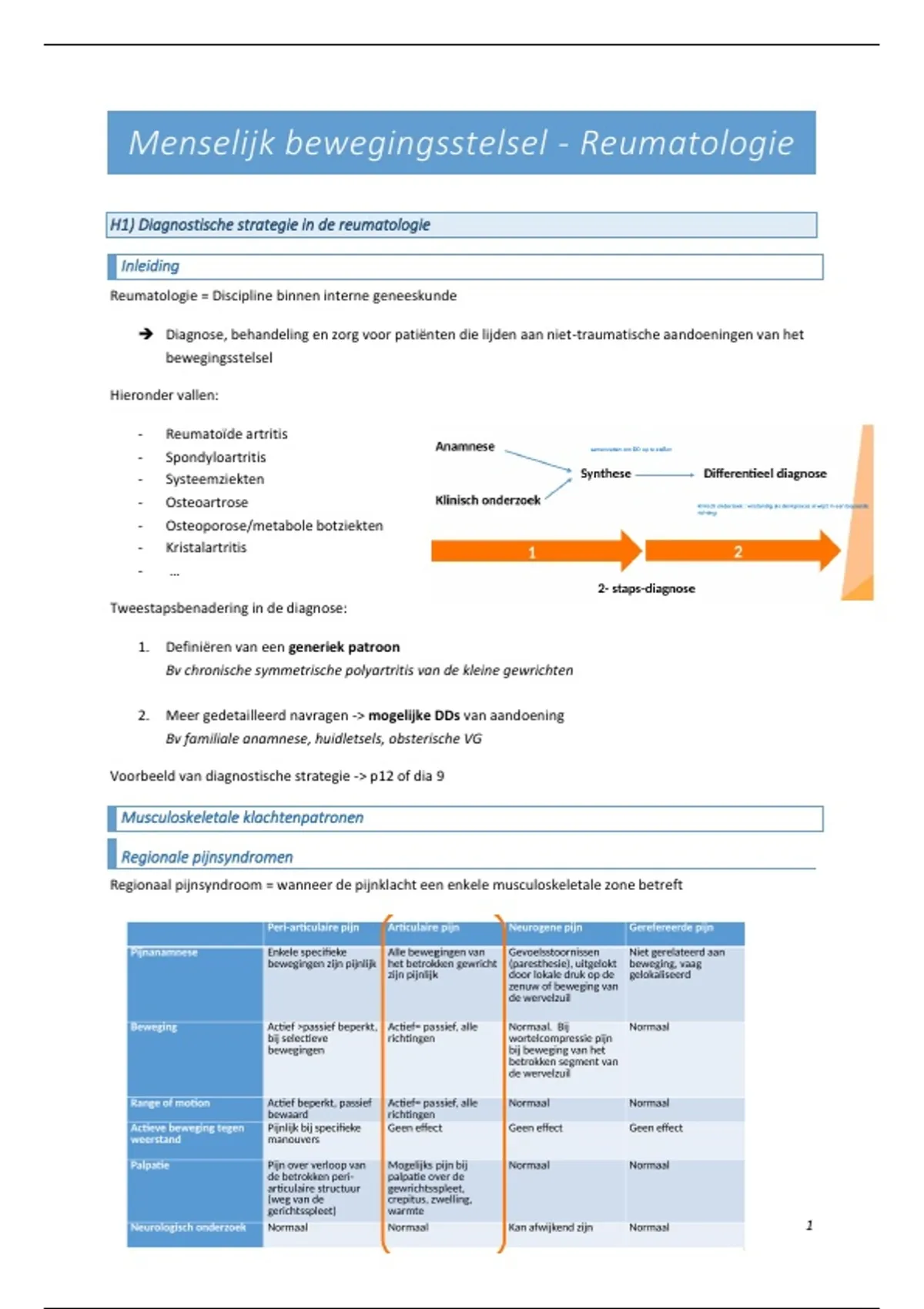 H1) Diagnostische strategie in de reumatologie