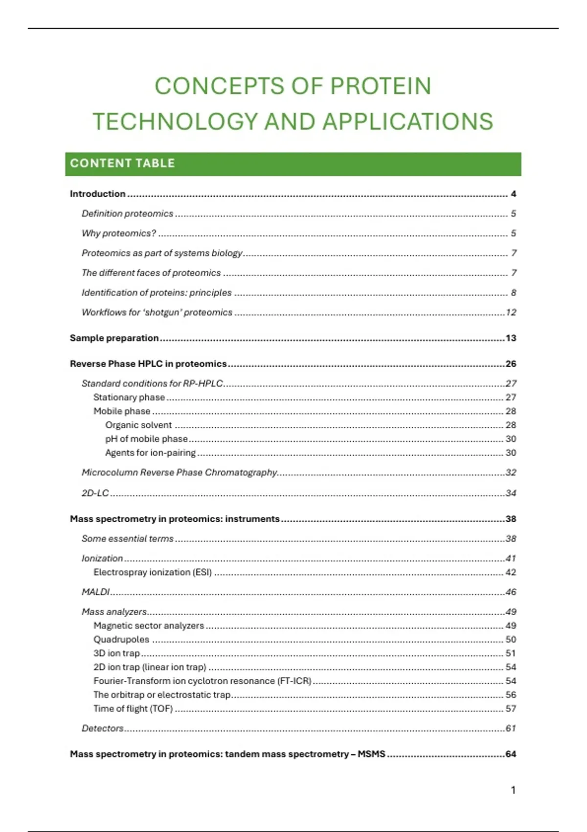 Mass spectrometry in proteomics: tandem mass spectrometry – MSMS ........................................ 64