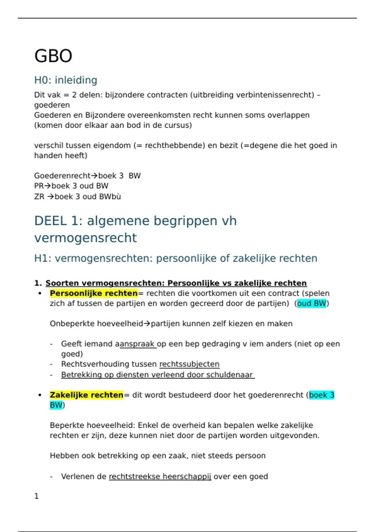 H1: vermogensrechten: persoonlijke of zakelijke rechten