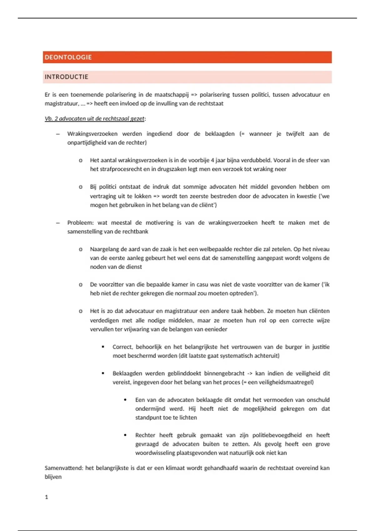 De deontologie omvat de regels die moeten waarborgen dat de magistraat, advocaat, en andere juridische