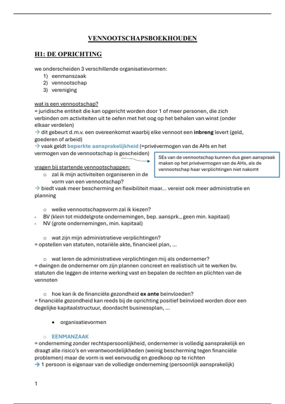 à 1 persoon is eigenaar van de volledige onderneming (persoonlijk aansprakelijk)