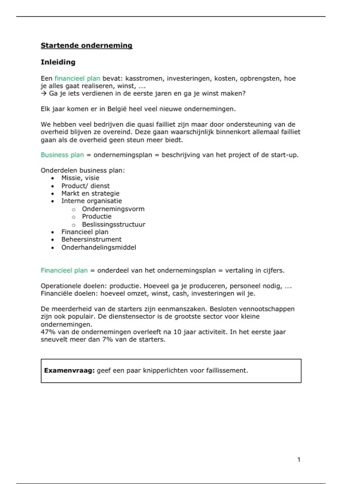 Onderdelen business plan: