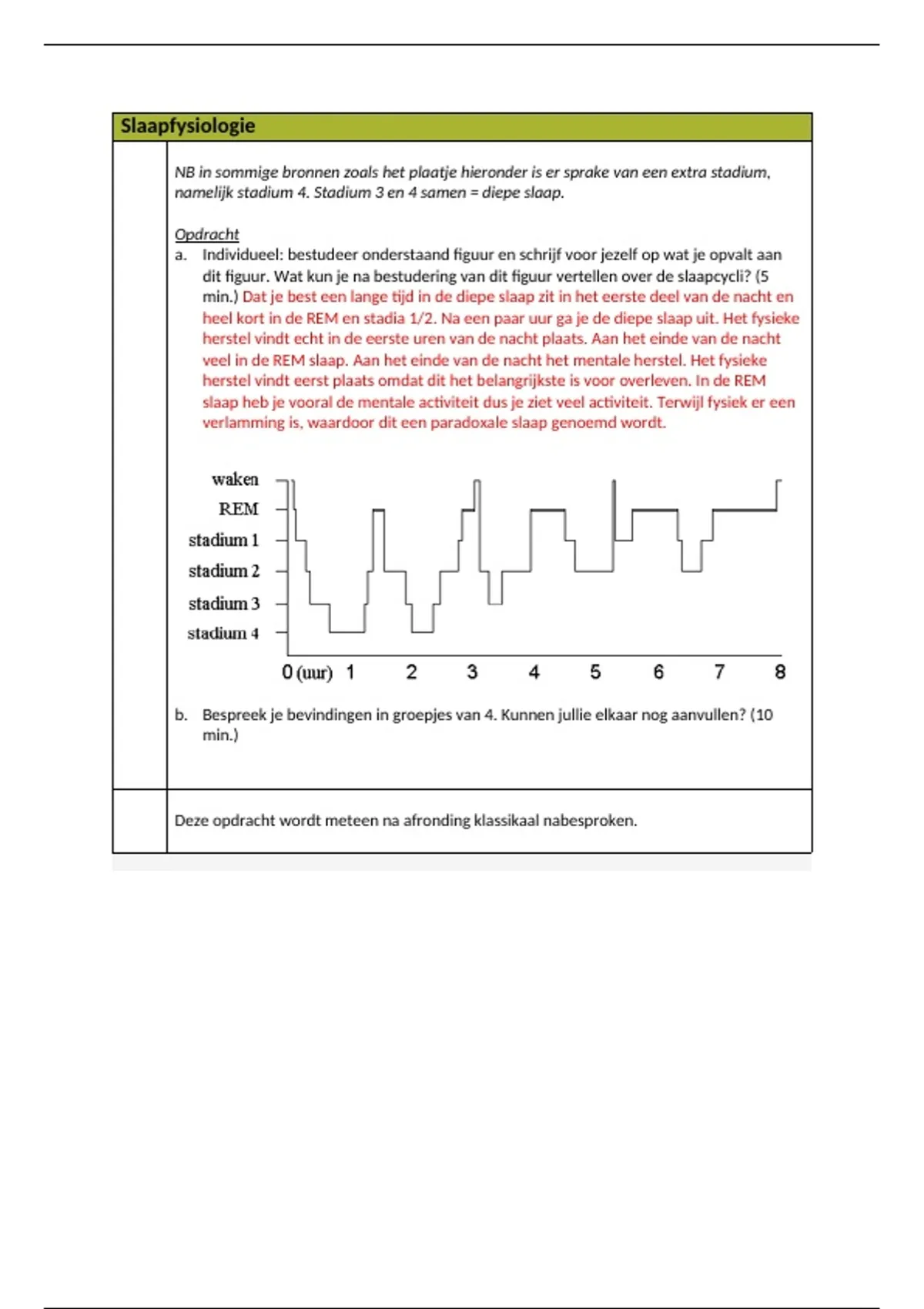 Opdracht Slaapfysiologie in de les Week 12