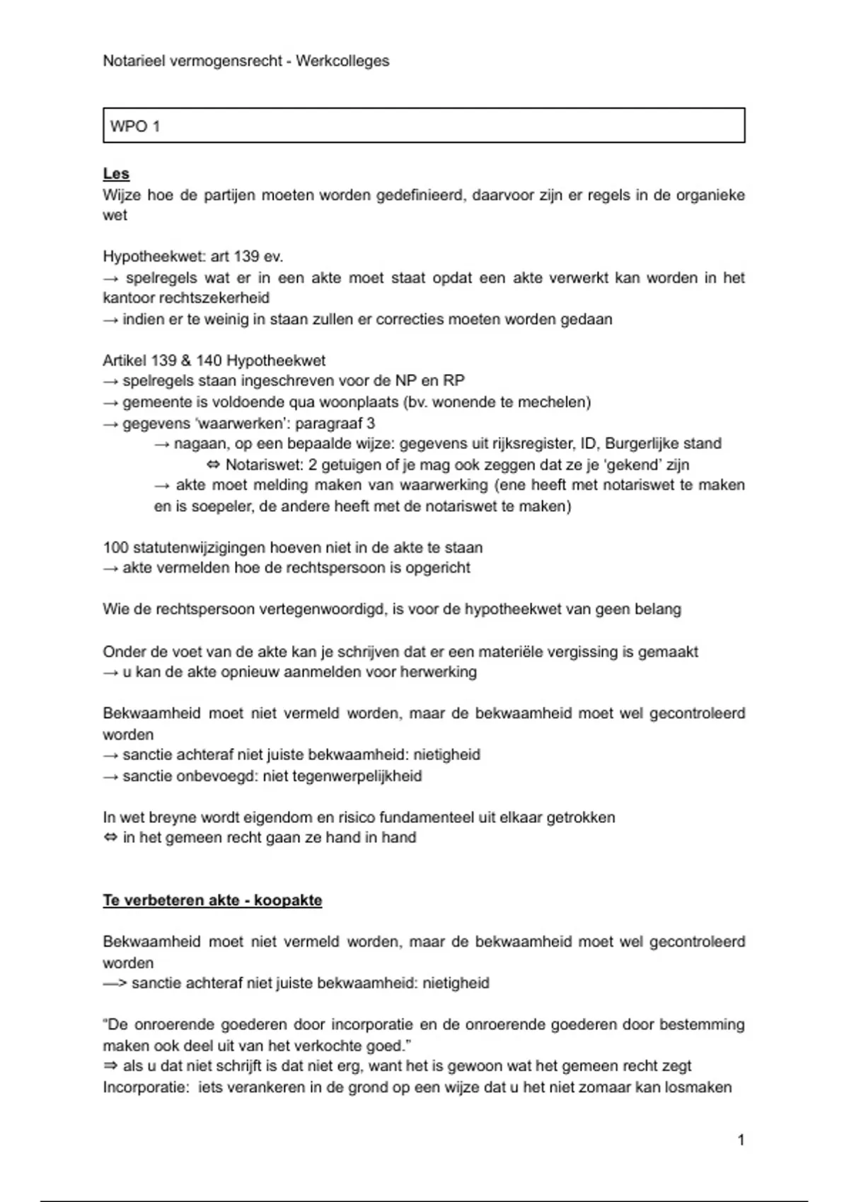 Lesnotities van de werkcolleges van het vak Notarieel Vermogensrecht gegeven in de Master-na-Master Notariaat aan de VUB (R. Jansen).