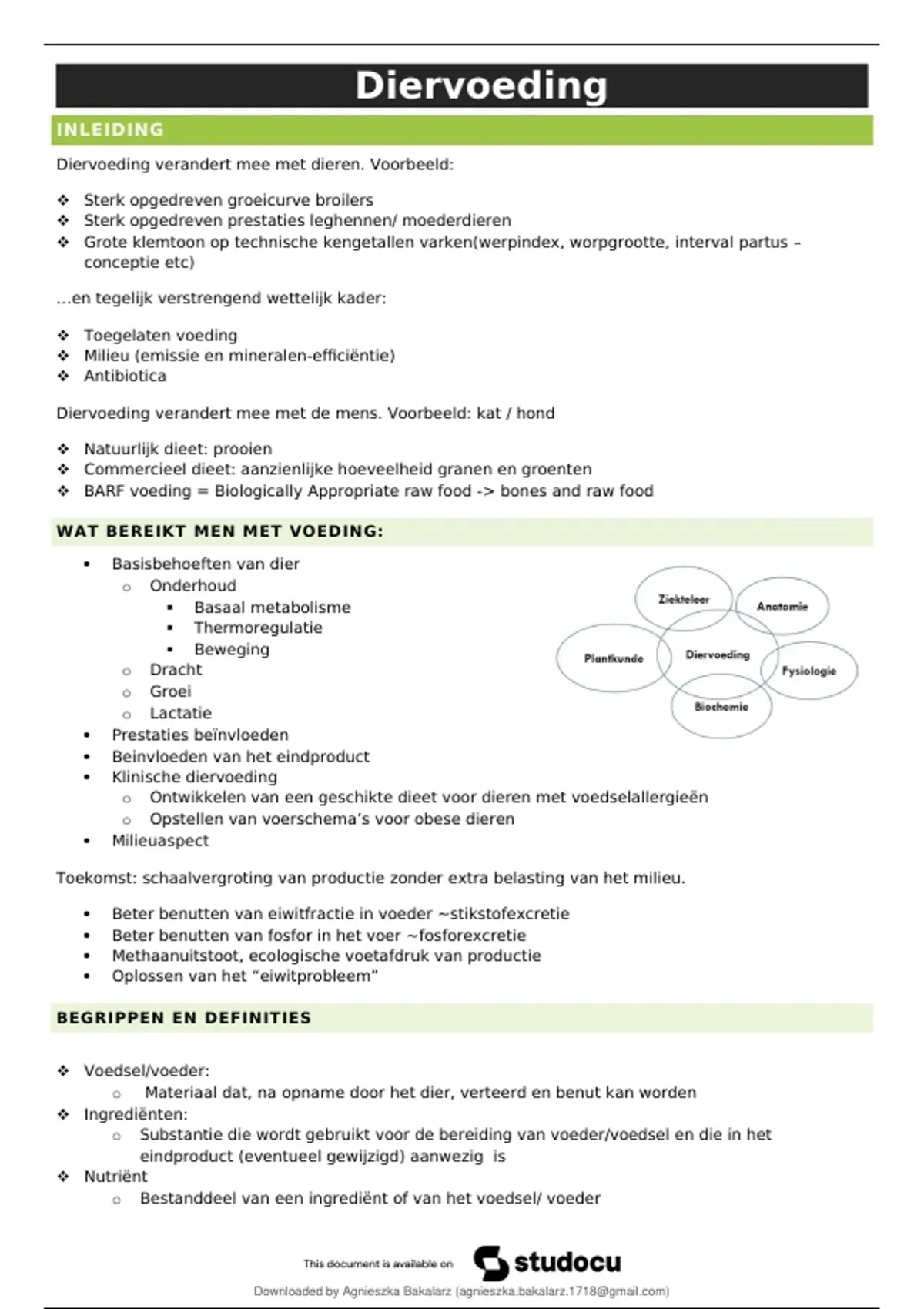 o Materiaal dat, na opname door het dier, verteerd en benut kan worden