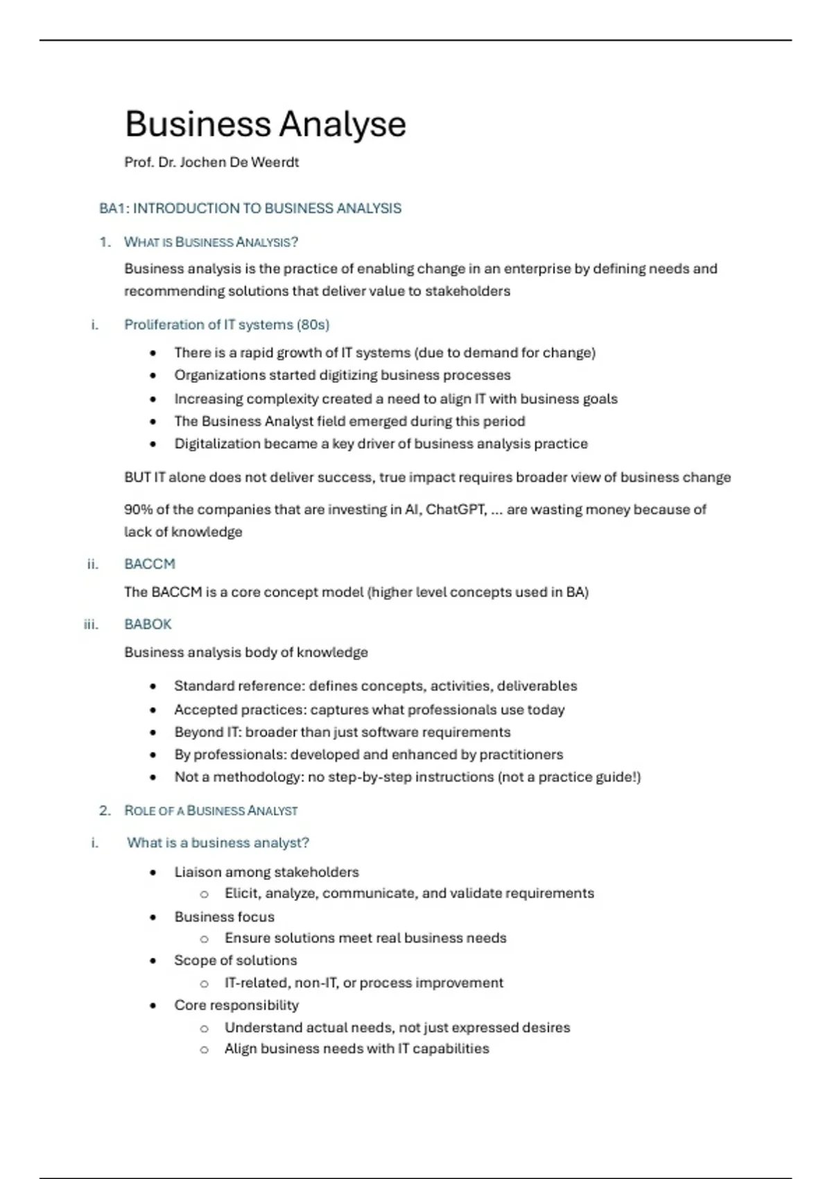 BA1: INTRODUCTION TO BUSINESS ANALYSIS
