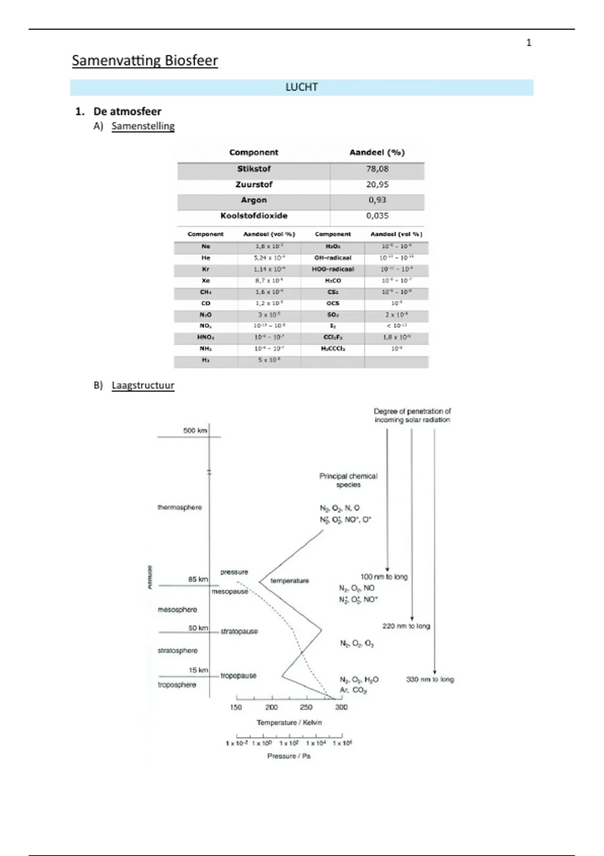 Samenvatting biosfeer: lucht