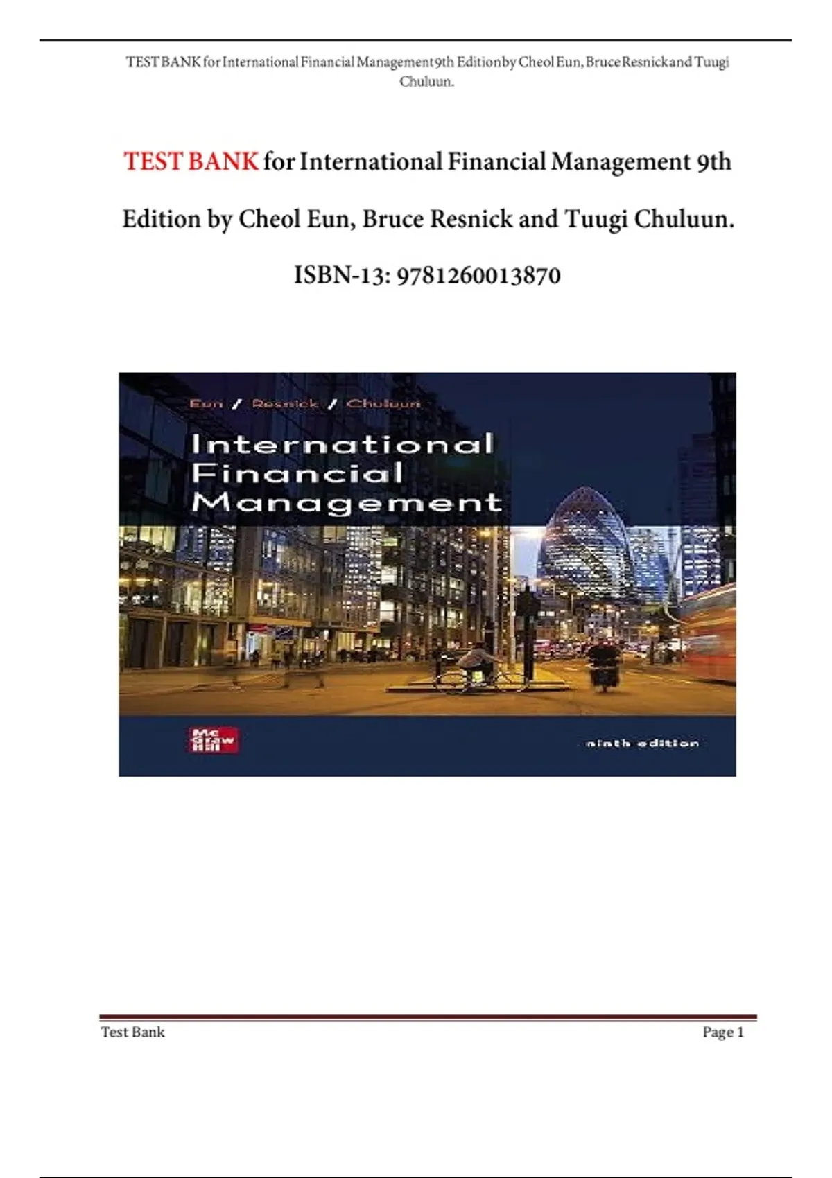 TEST BANK for International Financial Management 9th Edition by Cheol Eun, Bruce Resnick and Tuugi Chuluun. ISBN-13: 9781260013870