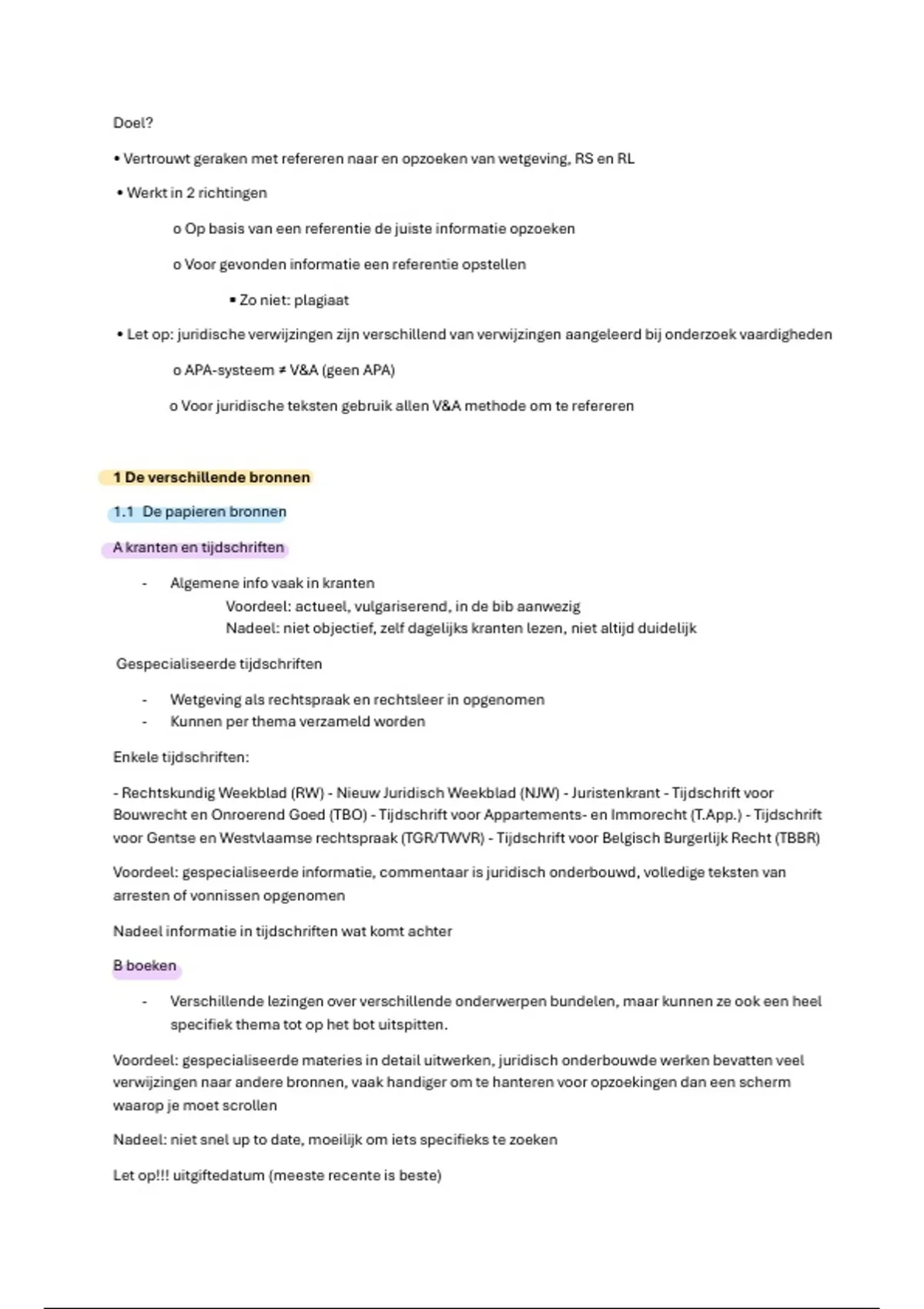 o Voor juridische teksten gebruik allen V&A methode om te refereren