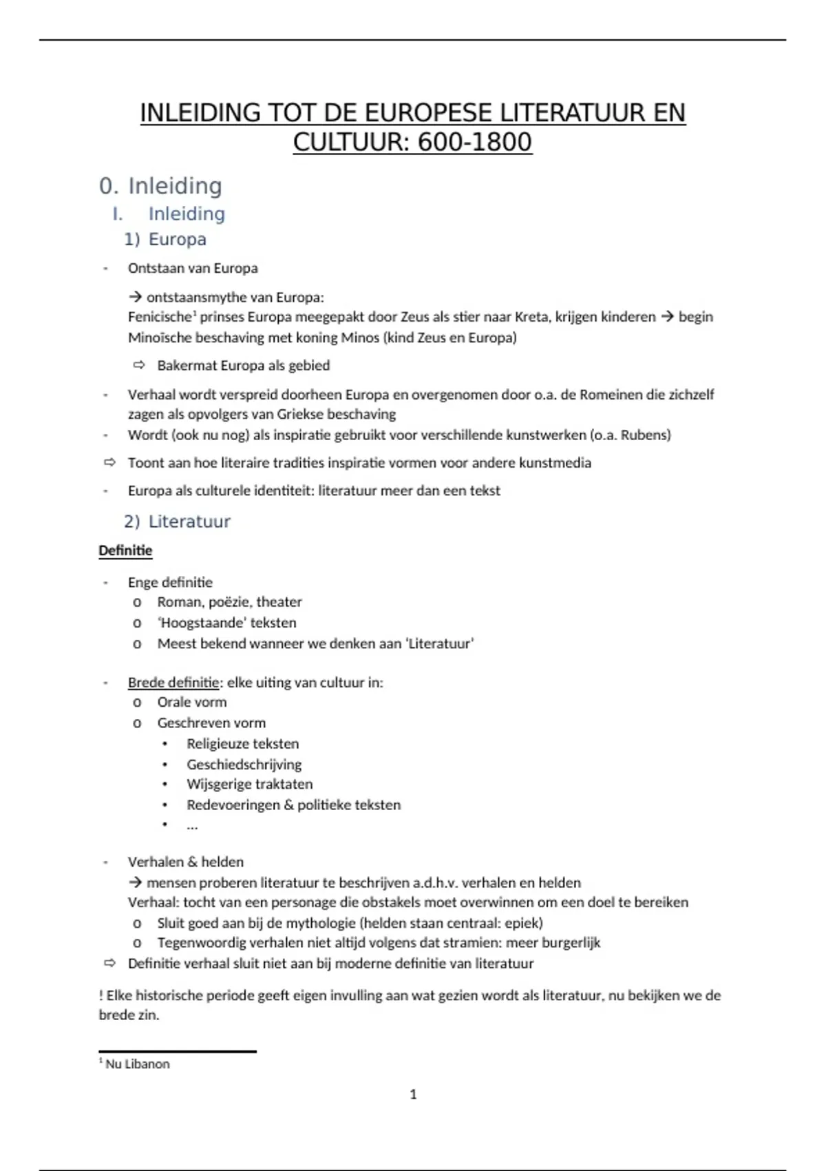 Inleiding tot de studie van de Europese literatuur en cultuur, voor 1800 - uitgebreide samenvatting