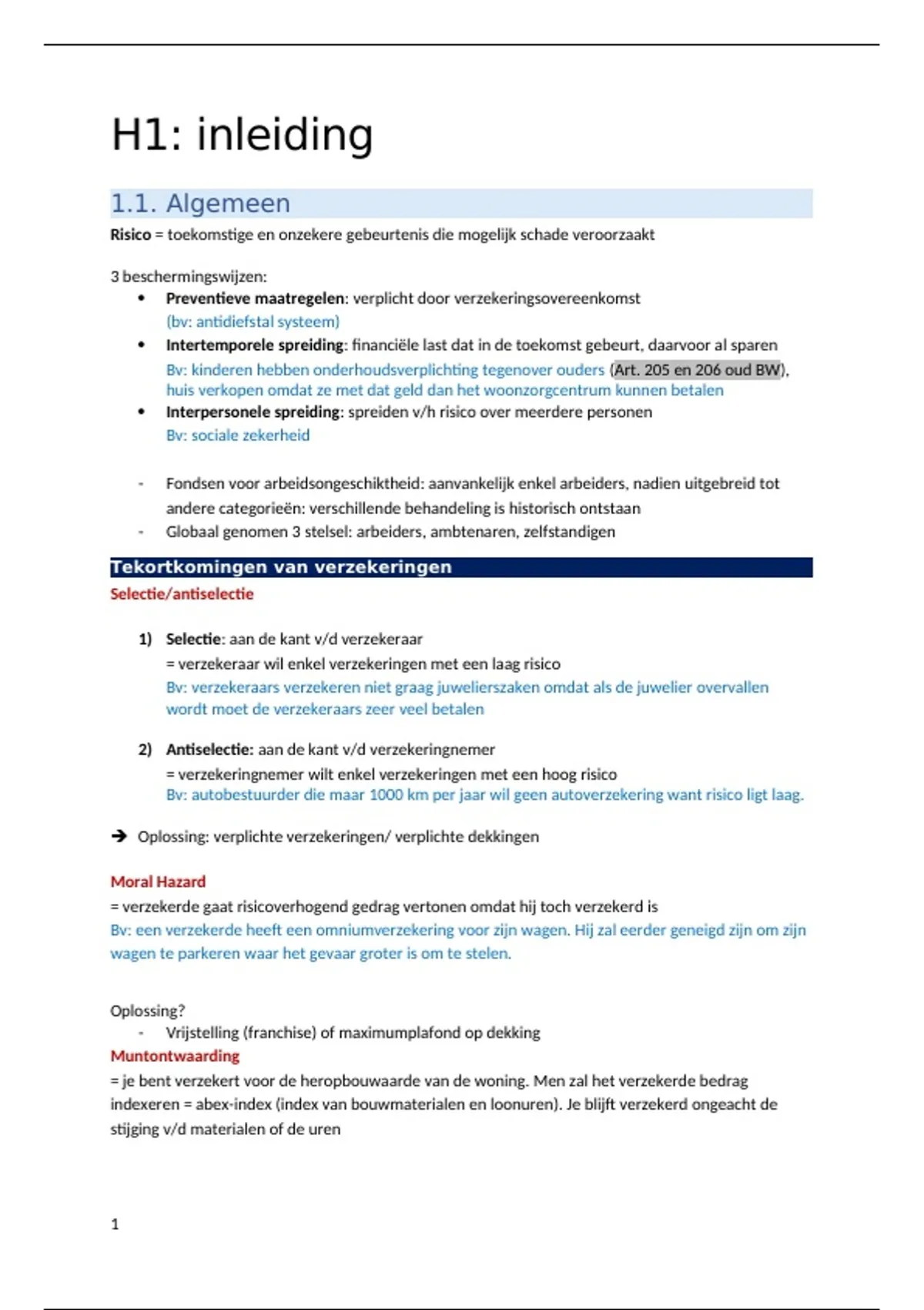 , H2: Indeling verzekeringen