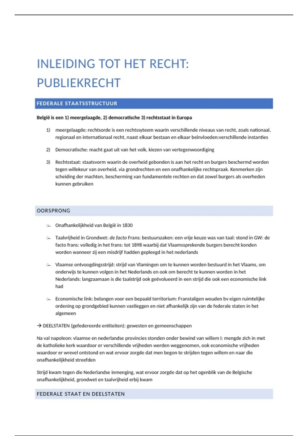 België is een 1) meergelaagde, 2) democratische 3) rechtsstaat in Europa