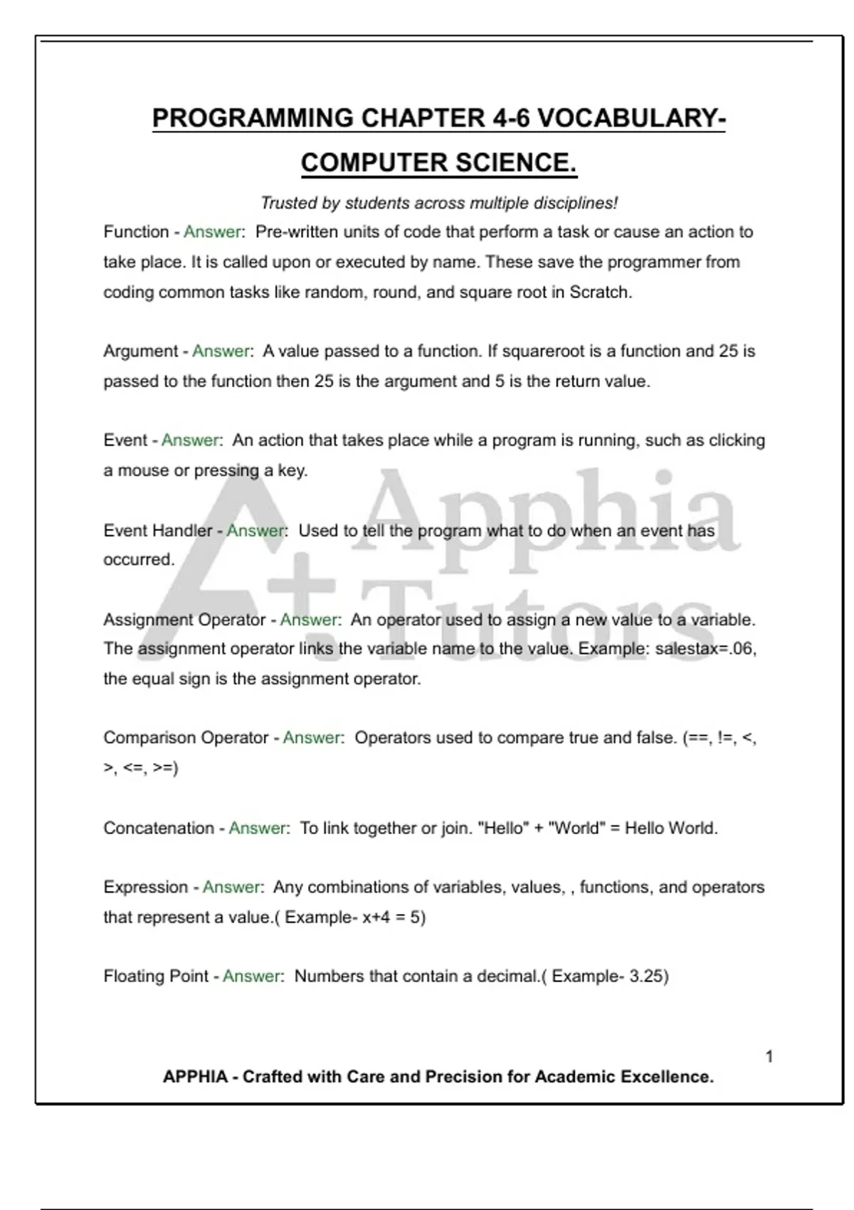 Apphia Tutors is your all-in-one global study guide hub — built to make learning simple, smart, and rewarding. We bring together thousands of high-quality study materials, topic-specific notes, and verified answers designed to help students master every subject with ease. Whether you’re in high school, college, or university, Apphia Tutors has everything you need — from clear explanations to exam-ready practice questions. Our goal is to turn studying into a confident, stress-free journey toward success. Trusted by learners and educators worldwide, Apphia Tutors is where great grades begin and excellence grows.
