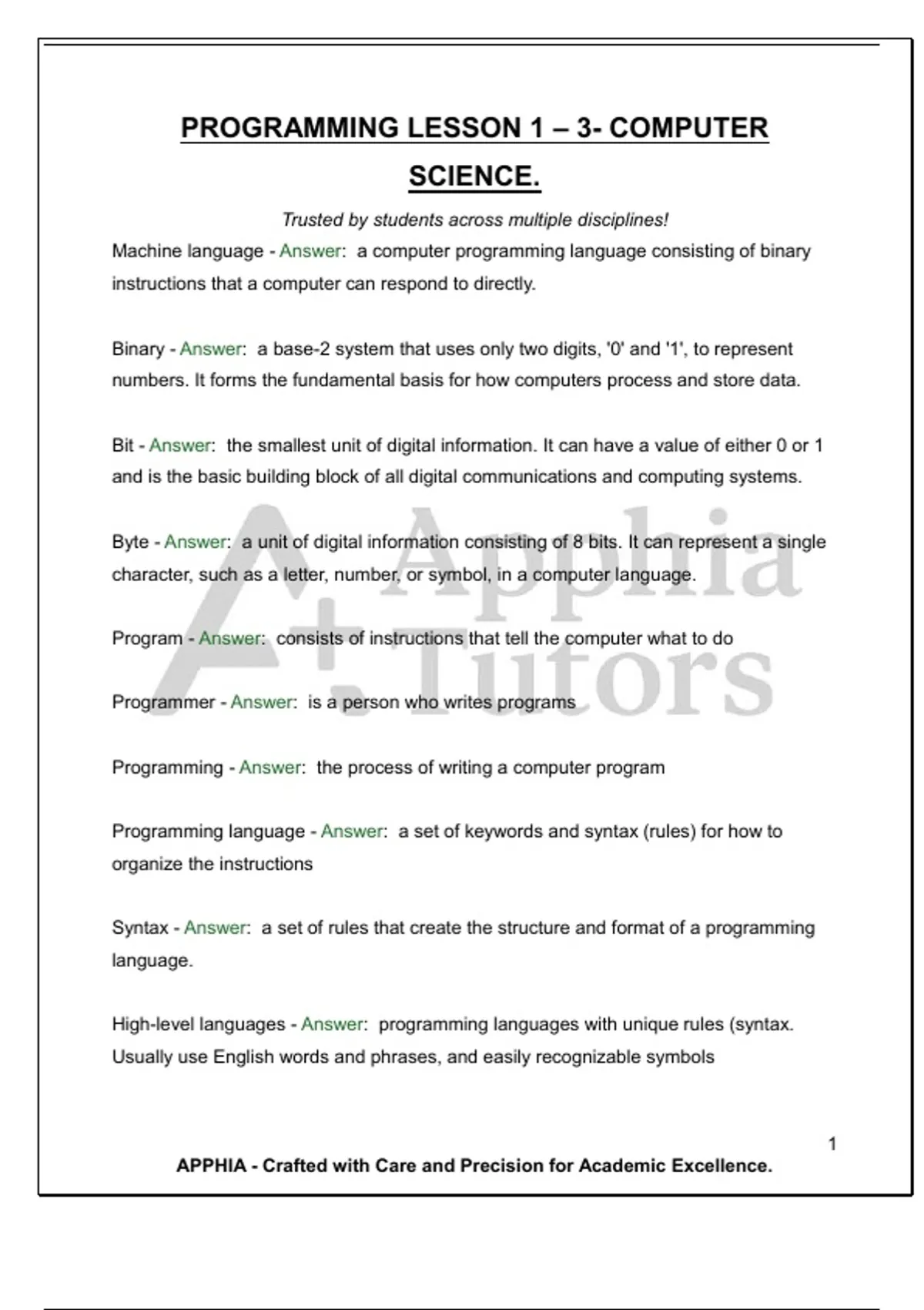 PROGRAMMING LESSON 1 – 3- COMPUTER SCIENCE. Trusted by students across multiple disciplines!
