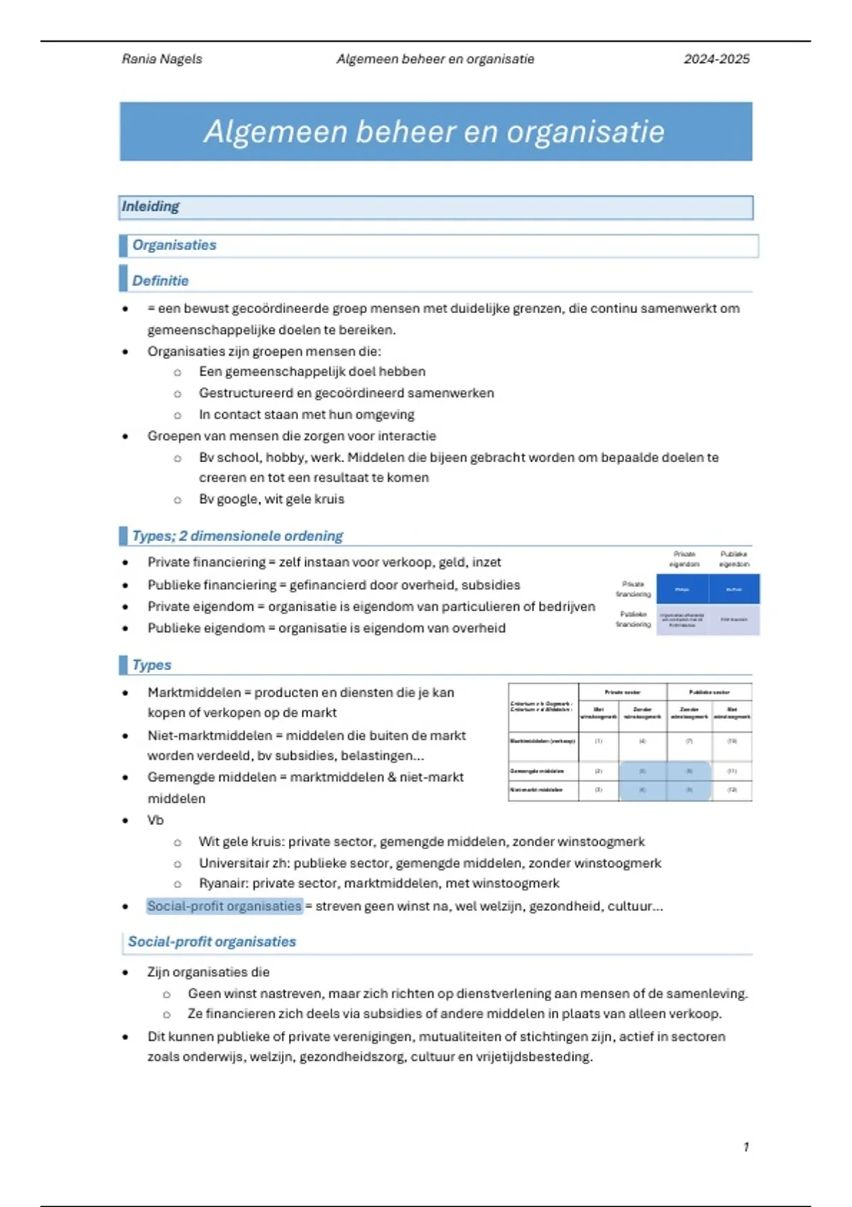 , Rania Nagels Algemeen beheer en organisatie 2024-2025