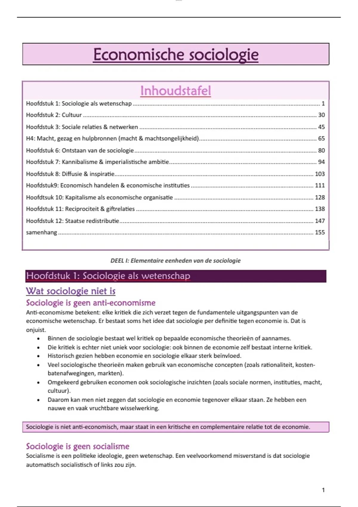 Hoofdstuk 1: Sociologie als wetenschap ................................................................................................................. 1