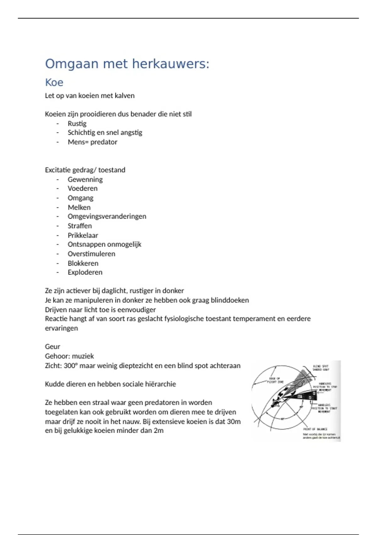 maar drijf ze nooit in het nauw. Bij extensieve koeien is dat 30m