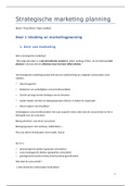 Dit document is een samenvatting van het vak Strategische Marketing en bevat eigen notities, info uit het boek en info van slides uit de lessen van Greta Vandenboer.
