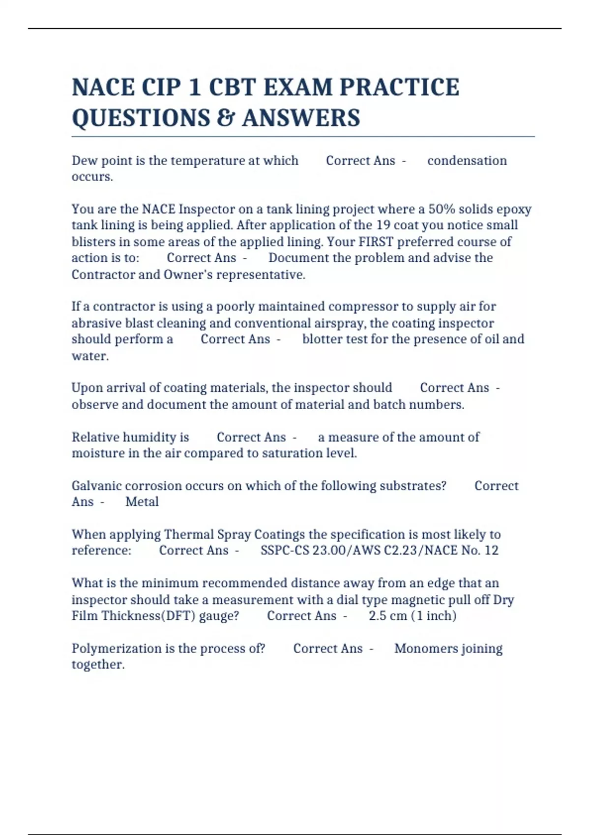BUNDLE:: NACE CP1/NACE CIP1 CBT EXAMS COMPILED