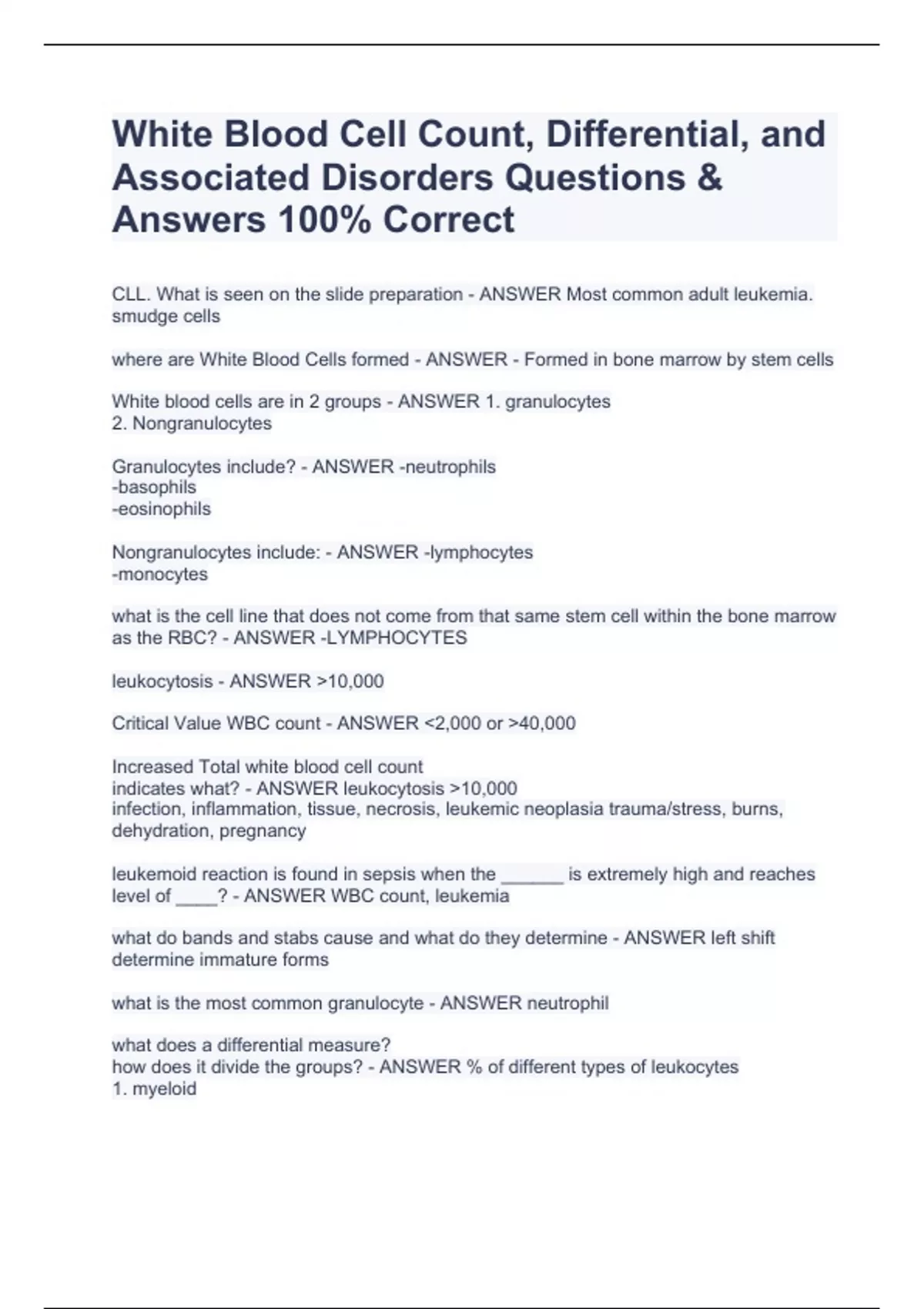 White Blood Cell Disorders EXAM BUNDLE| Complete Questions and Answers 100% AccurateWhite Blood Cell Disorders EXAM BUNDLE| Complete Questions and Answers 100% AccurateWhite Blood Cell Disorders EXAM BUNDLE| Complete Questions and Answers 100% AccurateWhite Blood Cell Disorders EXAM BUNDLE| Complete Questions