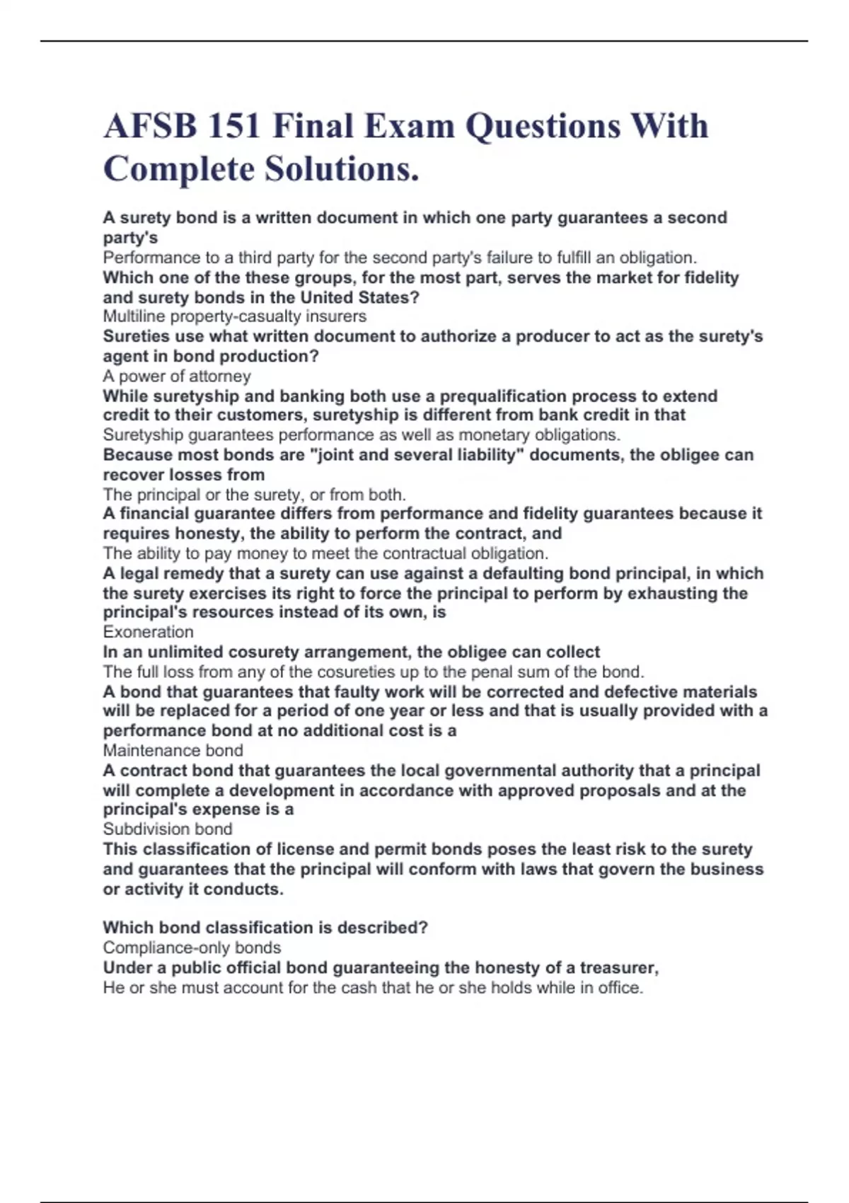 AFSB 151 EXAM PACKAGE DEAL WITH COMPLETE SOLUTIONS.