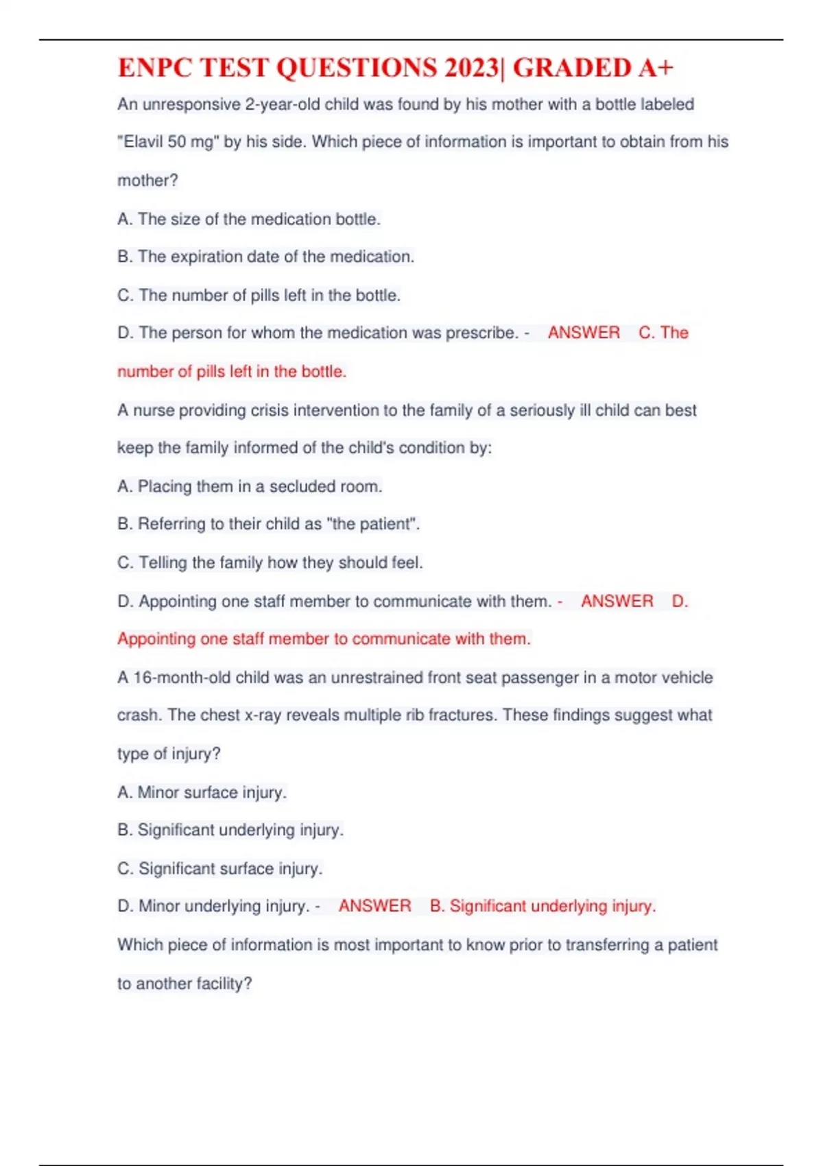 ENPC TEST/ENPC Exam Prep / Exam Questions5th Edition ENPC Exam Questions, Open Book Exams/ENPC 5th edition 2023/2024/ENPC Home Exam/ENPC Practice test