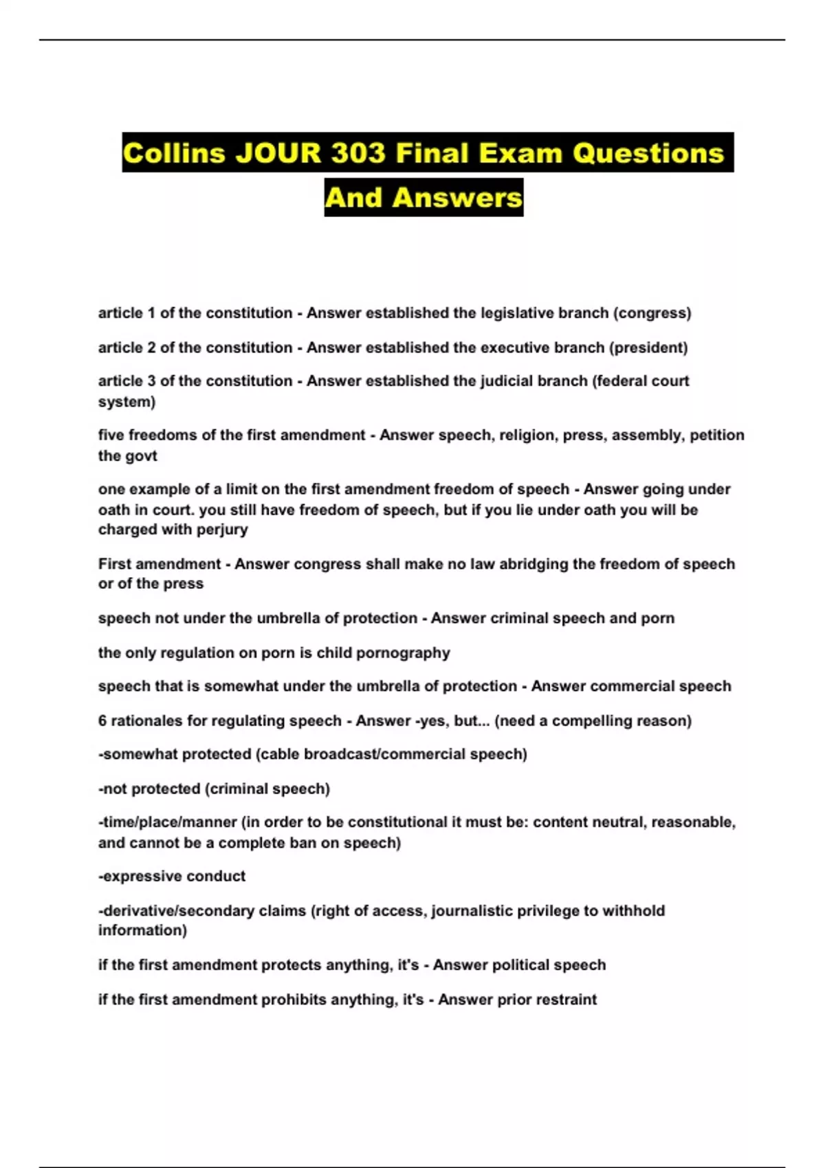 JOUR 303 Collins FINAL EXAM QUESTIONS AND ANSWERS