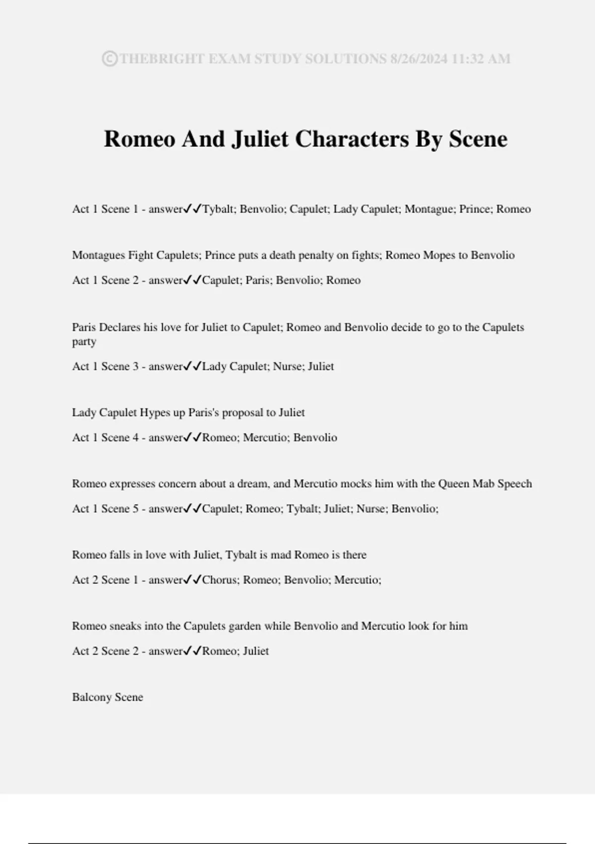 Romeo & Juliet Review Exam Questions With Correct Answers